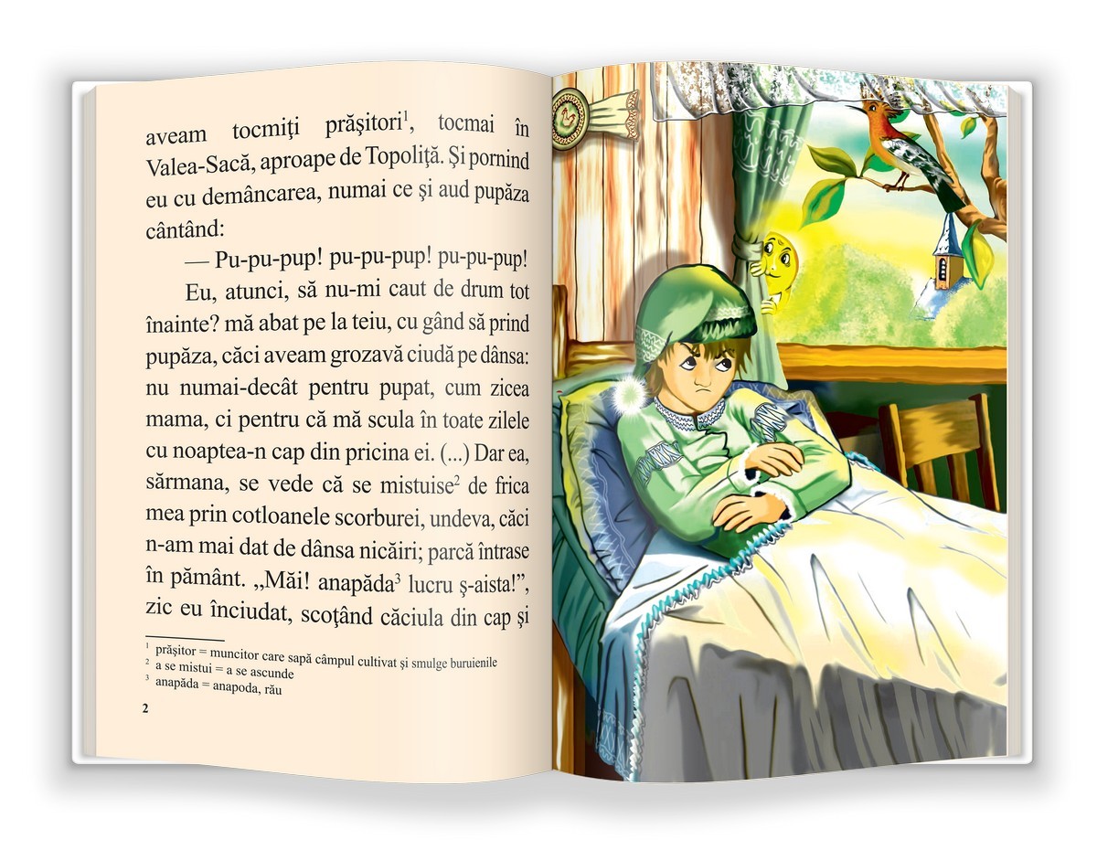 Cartea face parte din colecția „Învăț să citesc! Nivelul 2” și transpune fragmentul „Pupăza din tei”, extras din Amintiri din copilărie, într-un format special pentru cititorii începători, care abia acum exersează lectura fluentă. Cartea îl va ajuta pe copil să își exerseze citirea, iar ilustrațiile color și fontul de dimensiuni mari vor face ca textul să fie mai răsfirat și, implicit, ca lectura să fie mai atrăgătoare și mai ușor de parcurs. Cartea este destinată copiilor de 8-9 ani.