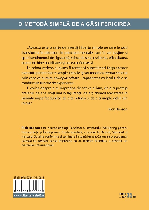 Rick Hanson este neuropsiholog. Fondator al Institutului Wellspring pentru Neuroștiință și Înţelepciune Contemplativă, a predat la Oxford, Stanford și Harvard. Susţine conferinţe şi seminare în toată lumea. Cartea sa precedentă, Creierul lui Buddha, scrisă împreună cu dr. Richard Mendius, a devenit un bestseller internaţional.
