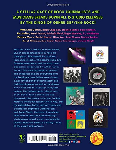 In this new installment in Voyageur Press's Album by Album series, rock journo Martin Popoff convenes a cast of 19 Queen experts and superfans to discuss all 15 of the band's studio albums (including their soundtrack for the 1980 film Flash Gordon). Panelists include Queen experts, rock journalists, musicians, and record industry figures. The results are freewheeling discussions delving into the individual songs, the circumstances that surrounded the recording of each album, the band and contemporary rock contexts into which they were released, and more.