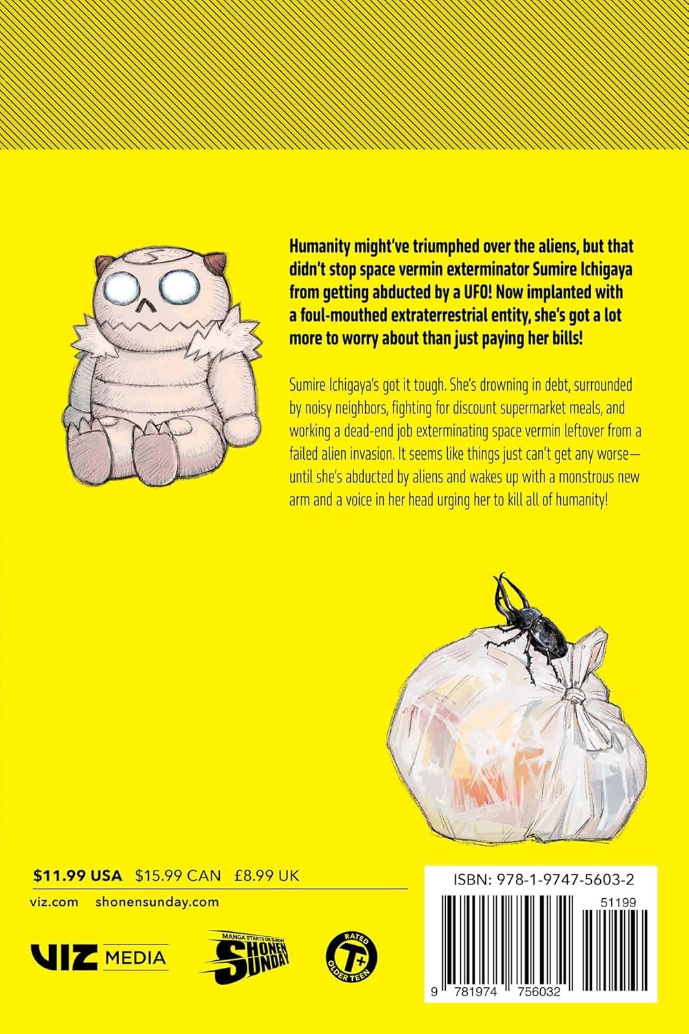 Humanity might've triumphed over the aliens, but that didn't stop struggling space vermin exterminator Sumire Ichigaya from getting abducted by a UFO After being implanted with a foul-mouthed extraterrestrial entity, she's got a lot more to worry about than just paying her bills Sumire Ichigaya's got it tough. She's drowning in debt, surrounded by noisy neighbors, fighting for discount supermarket meals, and working a dead-end job exterminating space vermin left over from a failed alien invasion. It seems like things just can't get any worse--until she's abducted by aliens and wakes up with a monstrous new arm and a voice in her head urging her to kill all of humanity