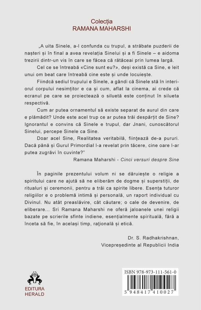 Sri Ramana Maharshi ne ofera jaloanele unei religii bazate pe scrierile sfinte indiene, esentialmente spirituala, fara a inceta sa fie, in acelasi timp, rationala si etica.
