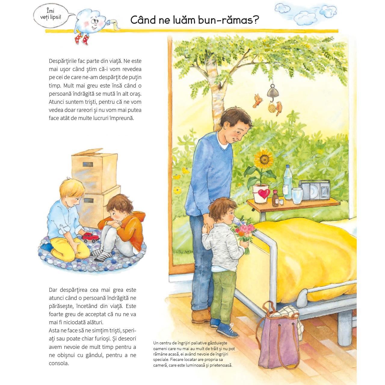 Trecerea în neființă ne afectează pe toți, se poate întâmpla oricând și ne lasă fără cuvinte. De ce mor oamenii? Și ce se întâmplă când moare cineva? Cum se simte doliul? Ce este o înmormântare? Toți cei care se străduiesc să răspundă în mod deschis și sincer la întrebările copiilor vor găsi în această carte ilustrată un mare ajutor.