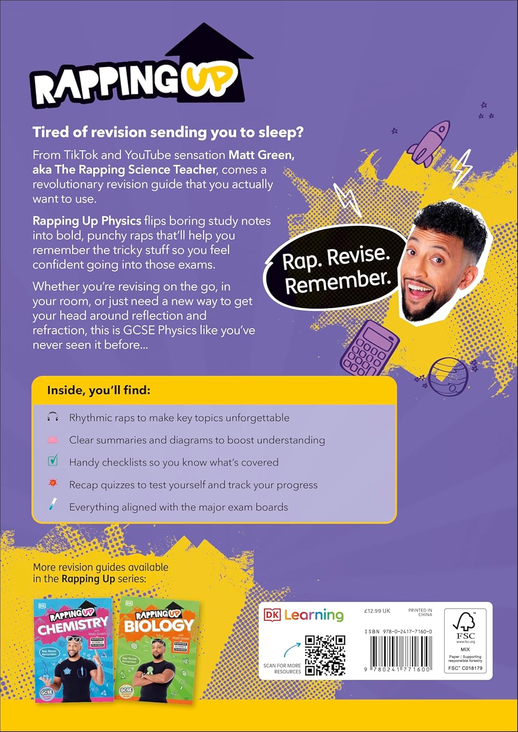 This revolutionary revision guide from Matt Green, The Rapping Science Teacher, is the perfect companion to the GCSE Physics course - it has everything pupils need to understand and remember key science concepts and it's ideal for ensuring they feel confident walking into their exams!