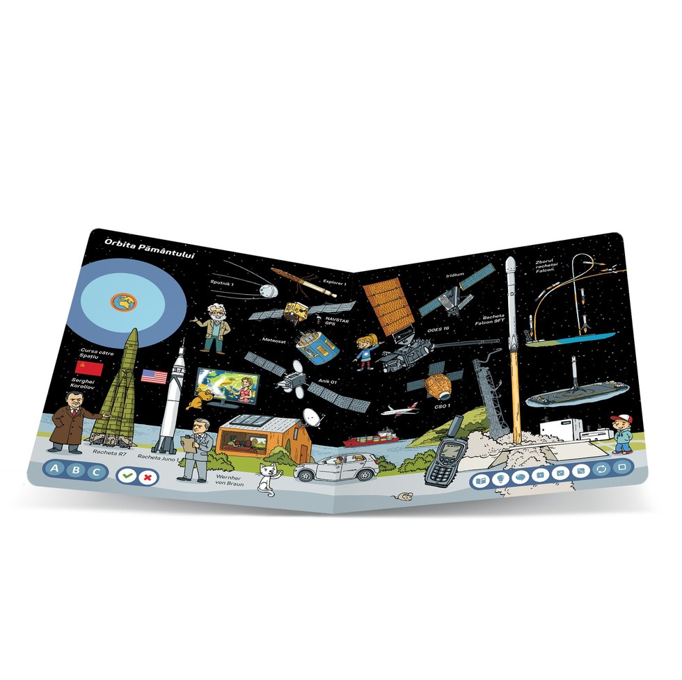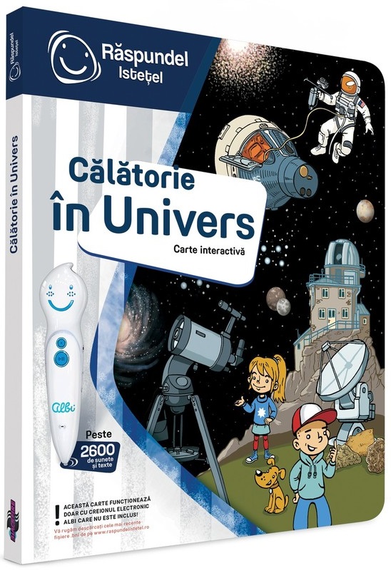 Descopera fascinantul Univers cu toate stelele, planetele, galaxiile sale, dar si oamenii care il exploreaza cu noua carte interactiva din colectia Raspundel Istetel. Calatorie in Univers. De aici vei afla numele planetelor, distanta dintre Pamant si Luna, cine au fost primii astronomi si multe alte informatii interesante despre ce se gaseste in afara planetei noastre.