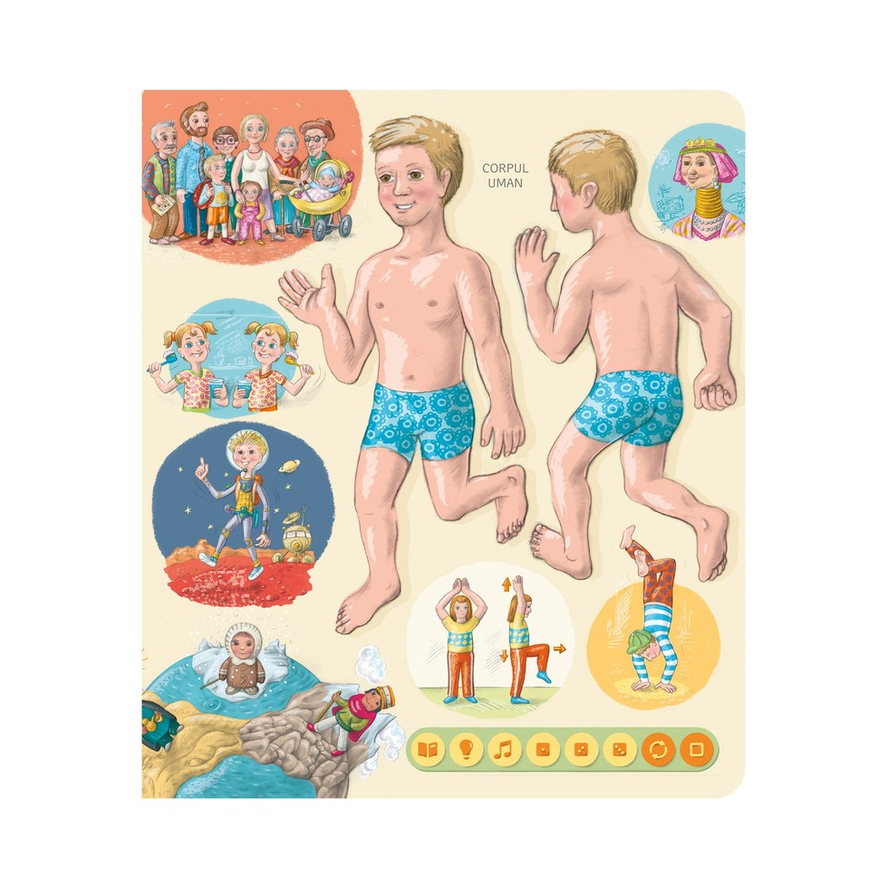 Personajul Zorg si ilustratiile captivante stimuleaza copiii sa descopere treptat partile si sistemele corpului uman. Pe fiecare pagina puteti gasi instructiuni ce va vor recomanda si diverse exercitii fizice. In aceasta carte puteti gasi poezii, teste amuzante si teste speciale ce indeamna copiii sa verifice informatiile pe care le-au aflat.