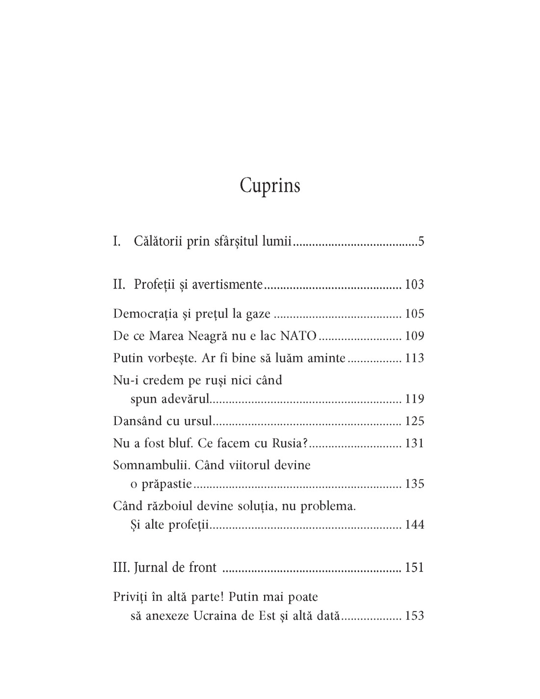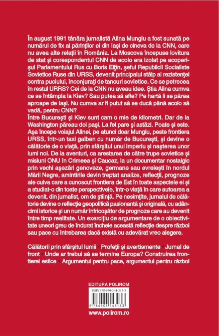 Așa începe voiajul Alinei, pe atunci doar Mungiu, peste frontiera URSS, într-un taxi galben cu număr de București, și devine o călătorie de o viață, prin sfârșitul unui imperiu și nașterea unor lumi noi. De la aventuri, ca arestarea de către trupe sovietice și misiuni ONU în Crimeea și Caucaz, la un documentar nostalgic prin vechi așezări genoveze, germane sau evreiești în nordul Mării Negre, amintirile devin treptat analize, reflecții, prognoze ale cuiva care a cunoscut frontiera de Est în toate aspectele ei și a studiat-o din toate perspectivele, într-o viață în care autoarea a devenit, din jurnalist, om de știință. Pe nesimțite, jurnalul de călătorie devine o reflecție geopolitică pasionantă și originală, cu adâncimi istorice și un număr înfricoșător de prognoze care au devenit între timp realitate. Un exercițiu de argumentare de o obiectivitate uneori greu de îndurat încheie această reflecție despre război sau pace cu întrebarea dacă există cu adevărat vreo alegere.