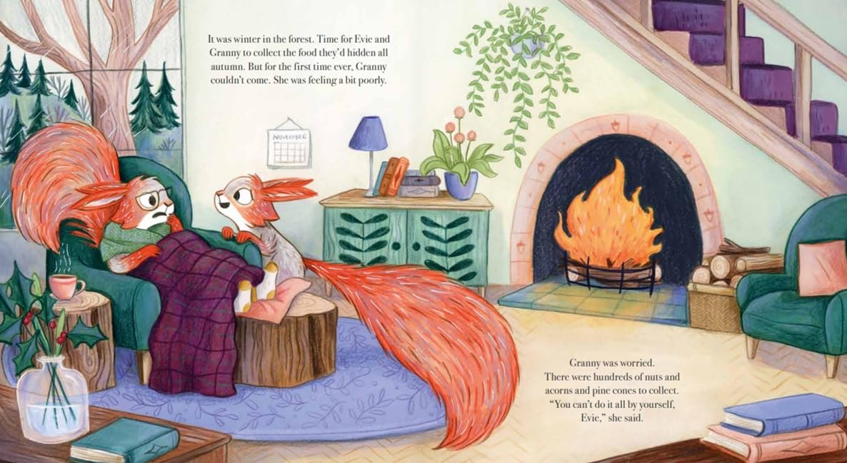 It's winter in the forest: time for squirrels to gather all the nuts and acorns and pine cones they'd squirrelled away in the autumn.