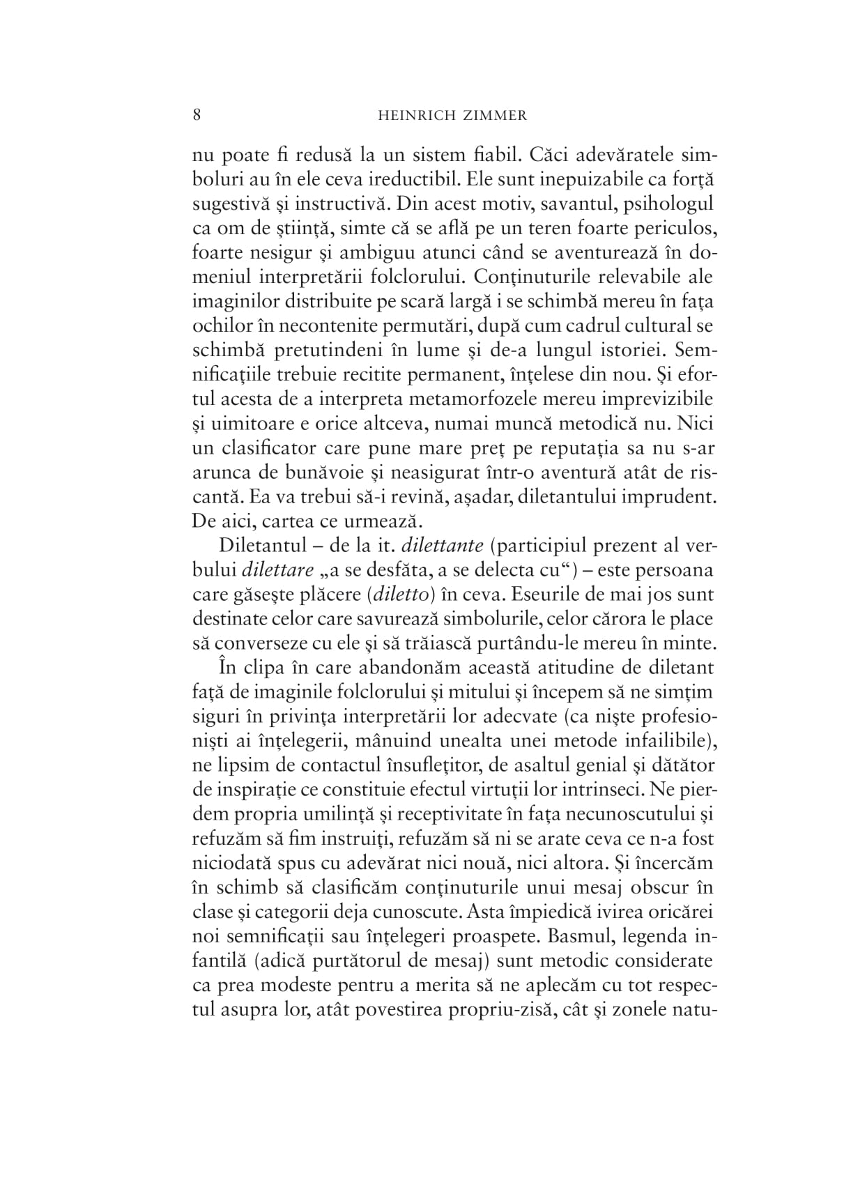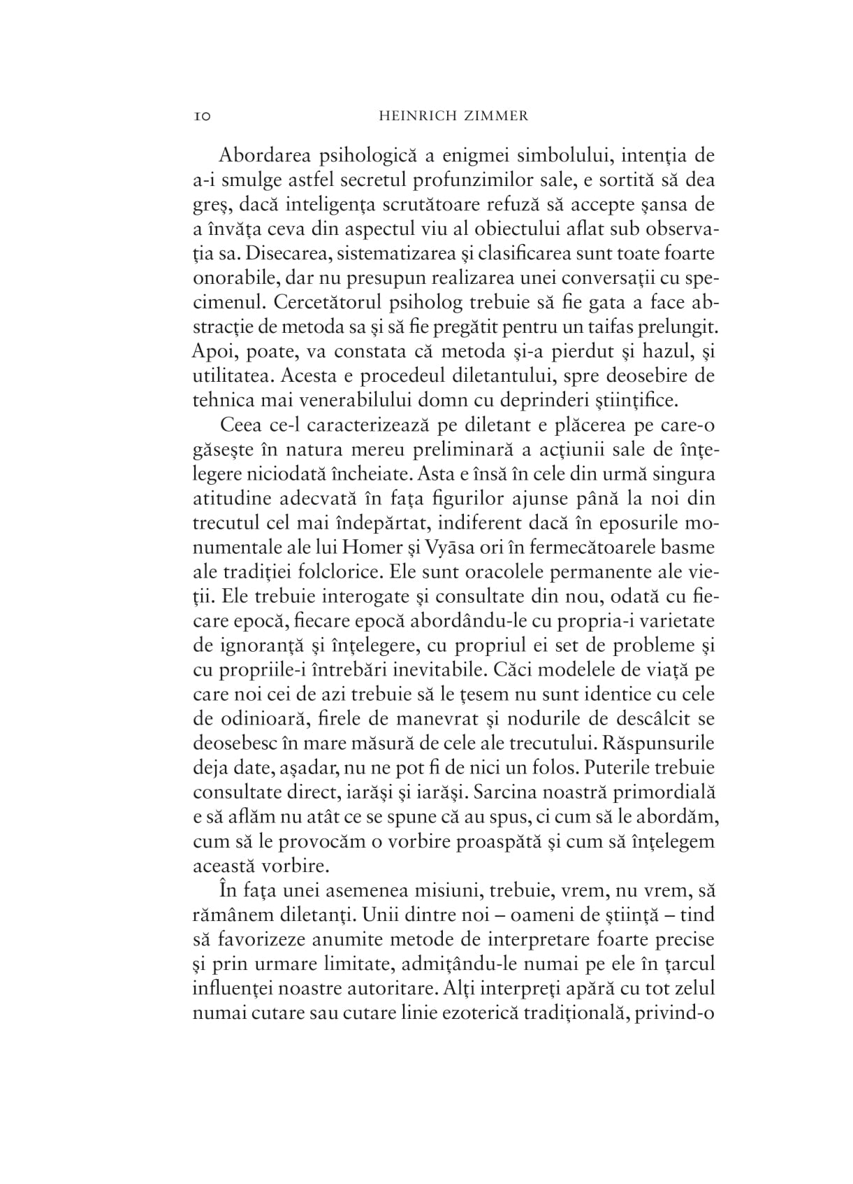 „Pe Heinrich Zimmer l-am cunoscut la începutul anilor ’30. Am găsit în el un om genial cu un temperament extrem de viu. Vorbeam mai ales despre mitologia indiană. În întreaga sa ființă, Zimmer a fost un puer aeternus, care, pe aripile unui limbaj strălucitor, făcea să înflorească toți mugurii din grădinile legendelor indiene. I-a împărtășit și soarta, căci tânăr moare cel ce e iubit de zei. Atât Zimmer, cât și Richard Wilhelm aveau o naivitate genială. Amândoi păreau să trăiască în realitate ca într-o lume străină, în timp ce ființa lor cea mai lăuntrică urma, neexplorată și neatinsă, linia sumbră a destinului.“ — C.G. JUNG