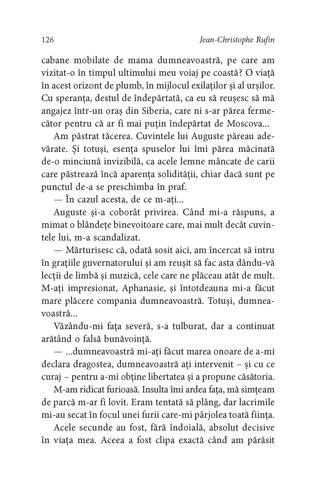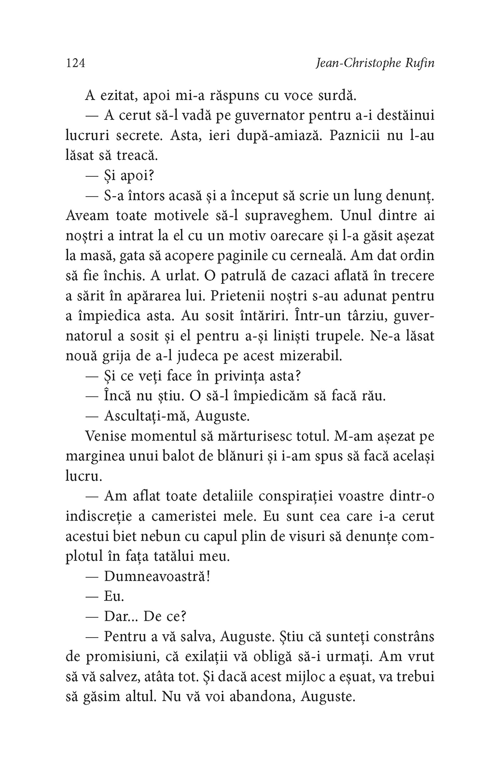 „Un roman magnific! Jean-Christophe Rufin ne poartă în alte lumi, în alte timpuri, explorînd cu măiestrie tărîmurile umanului.” (Madame Figaro)