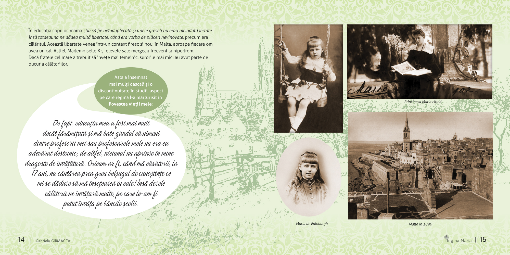 Textul este însoțit de imagini de epocă și documente ilustrative, care adaugă un plus de autenticitate și profunzime. Prin stilul său captivant și accesibil, lucrarea devine o resursă valoroasă atât pentru pasionații de istorie, cât și pentru cititorii care doresc să descopere mai multe despre Regina Maria, femeia din spatele coroanei.