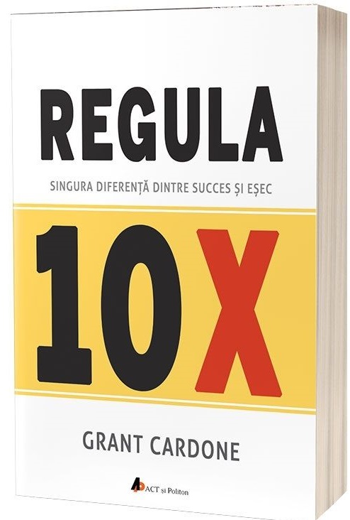 Regula 10X: Singura diferenta dintre succes si esec / The 10X Rule: The Only Difference Between Success and Failure de Grant Cardone este, dupa cum spune autorul, Sfantul Graal pentru toti cei care vor sa cunoasca succesul. O carte care iti va spori curajul si increderea in tine, va elimina tergiversarile si indoielile si te va inzestra cu un simt al scopului, care iti va anima viata, visurile si obiectivele. O lectura despre cum sa-ti creezi viata pe care ti-o doresti, distrandu-te mai mult si obtinand mai mult timp pentru tine si ceea ce iti place sa faci. O carte care iti spune ce sa faci ca sa reusesti!