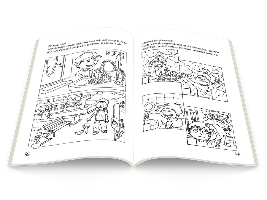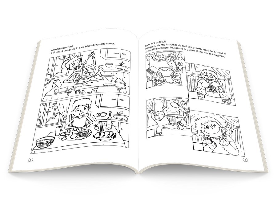Acest caiet face parte din colecția „Activități de zi cu zi”, care urmărește dezvoltarea copilului de-a lungul „copilăriei mijlocii”, în perioada dintre 3 ani și 6 ani. În această etapă a evoluției sale, jocul trebuie să fie activitatea principală – iar sarcinile propuse în caiete nu se abat de la acest principiu. Învățarea va deveni, astfel, o plăcere! Cu ajutorul cărții, copilul va descoperi lucruri esențiale despre autonomie, conduită, igienă și socializare. Cartea cu activități este potrivită pentru copiii de 5-6 ani.