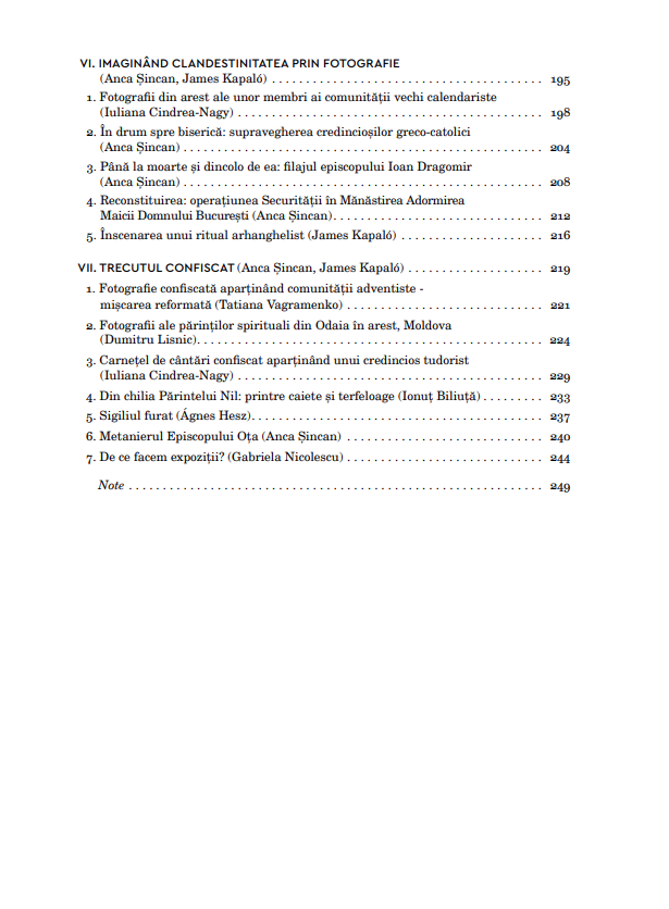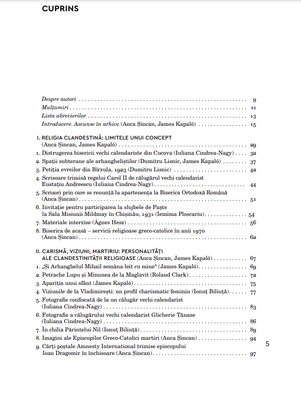 Volumul de față descoperă o latură prea puțin cercetată, materialitatea unei prezențe religioase ale cărei urme sunt consemnate – fragmentar, distorsionat, duplicitar și ipocrit – chiar de către puterea politică care căuta să o anihileze.