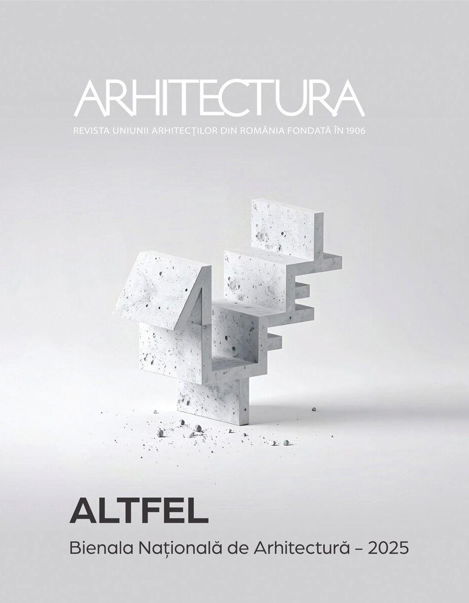 Revista ARHITECTURA nr. 5–6/2025 este numărul special dedicat Bienalei Naționale de Arhitectură 2025, ediția a XVI-a, cu tema „ALTFEL”. Volumul urmărește Bienala ca un jurnal de călătorie prin 9 orașe din țară, de la lansarea de la ARCUB din București până la galele din Constanța, Sibiu, Timișoara, Sighetu Marmației, Târgu Mureș, Târgoviște, Cluj-Napoca și Iași, acolo unde au fost premiate peste 100 de proiecte înscrise în 19 secțiuni. Cititorul găsește aici locuințe individuale și colective, școli, spitale și proiecte comunitare, expoziții, spații publice, revitalizare rurală, școli de vară și ateliere de meșteșuguri, arhitectură efemeră, fotografie, film de arhitectură, publicații și proiecte vizionare care discută orașele, satele și peisajele României de azi. Nu este o revistă rezervată doar profesioniștilor, ci o hartă de idei și povești pentru oricine este curios să înțeleagă cum se schimbă locurile în care trăim: cititori interesați de oraș, patrimoniu, natură, educație, film și fotografie, studenți, profesori, oameni din cultură și din administrație, sau pur și simplu cei care vor să vadă România construită altfel.