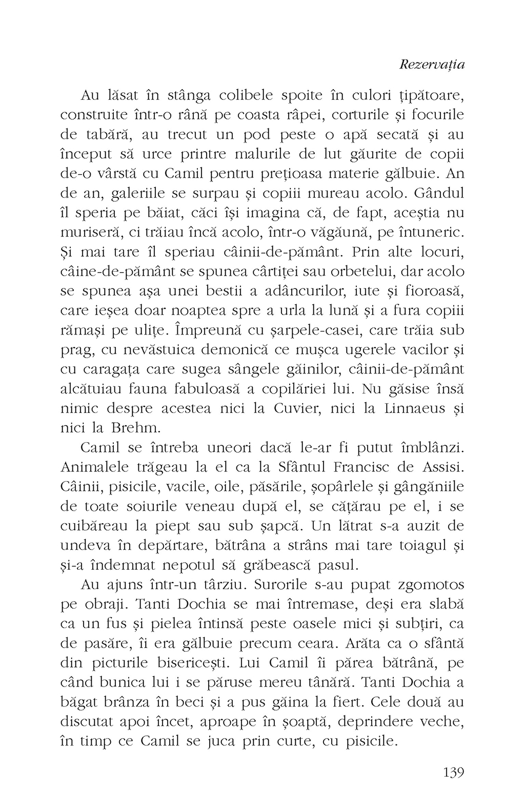 O a doua Grădină a Edenului descoperită pe Pământ doar pentru ca aceasta să se prăbușească în mundan, copilăria de-a lungul anilor ’90 într-un orășel din sudul Moldovei și o insulă pustie, unde tot ce poate fi găsit este propriul sine, toate legate printr-un fir diafan. Rezervația abordează teme precum desacralizarea, decăderea, formele singurătății, reciclarea ideilor și scindarea eului.