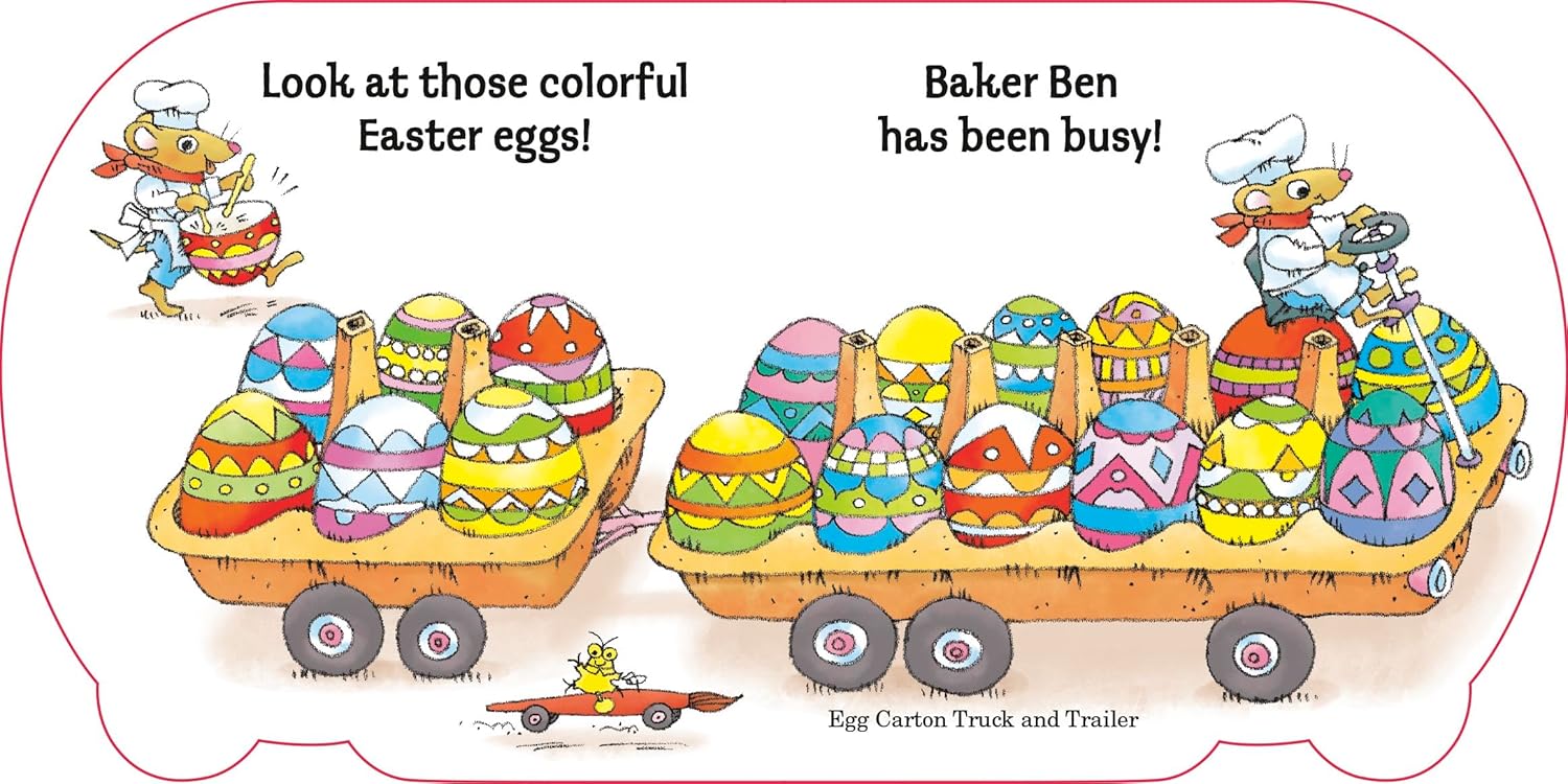 Lowly Worm, Huckle Cat, and all their Busytown friends are ready to celebrate Easter! This playful Busytown board book is packed with colorful cars and trucks, including a carrotbus, tulip scooters, Easter Egg blimps, and more! This adorable Richard Scarry egg-shaped board book is perfectly sized for the tiny hands of kids ages 0 to 3 and Easter baskets!