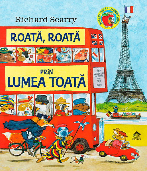 În lumea sa cea veselă, Richard Scarry ne poartă pe toate continentele și ne invită să cunoaștem o mulțime de țări și orașe prin întâmplări pline de umor și ilustrații care abundă în detalii.