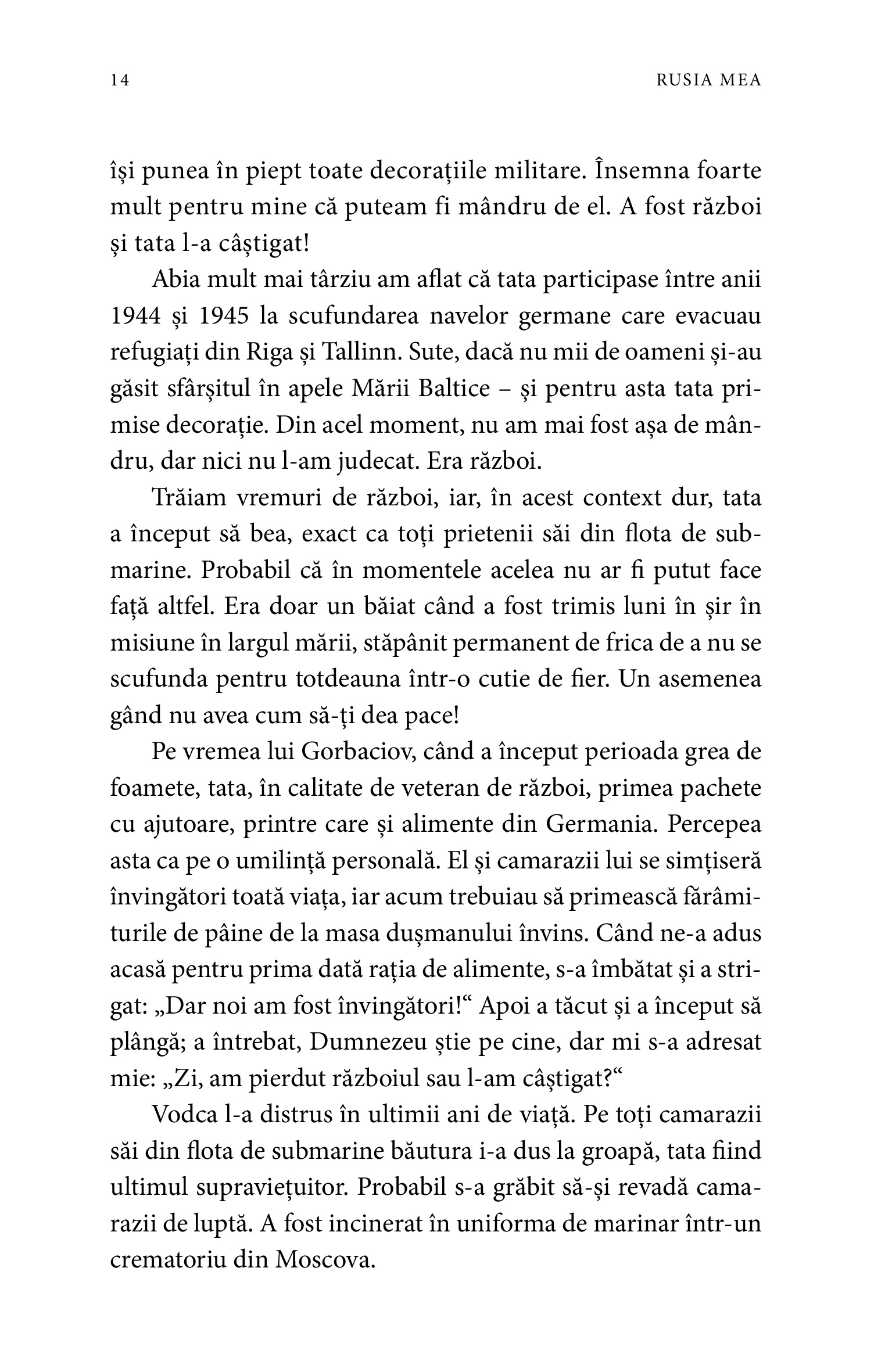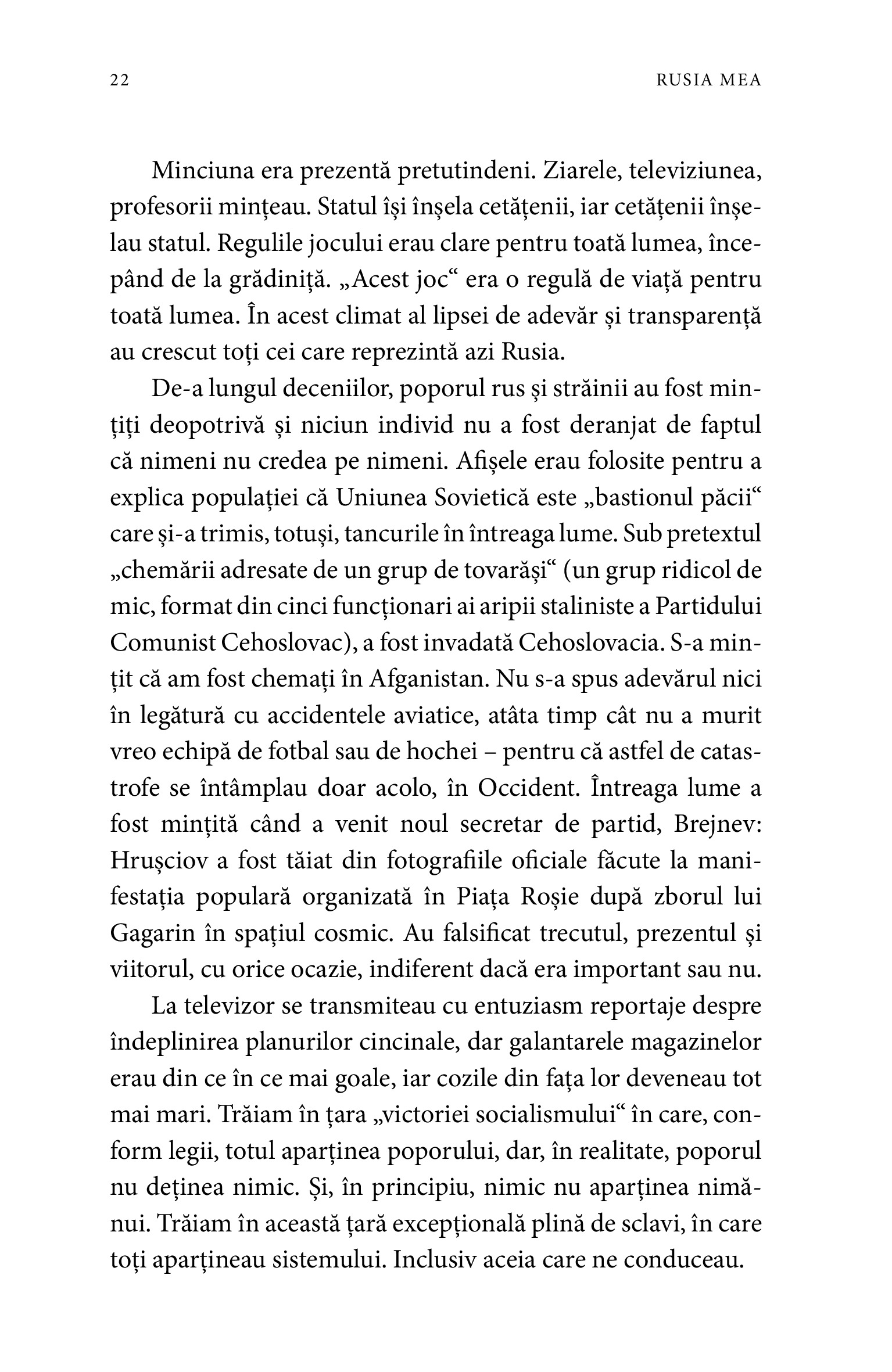 Având un caracter profund personal, dar și o viziune istorică largă, Rusia mea este o relatare revelatoare despre un stat cu un trecut sângeros, precum și o scrisoare de dragoste pentru patria natală. Va continua Rusia cercul vicios al revoluțiilor și autocrației sau poporul său își va găsi o cale nouă în istorie?