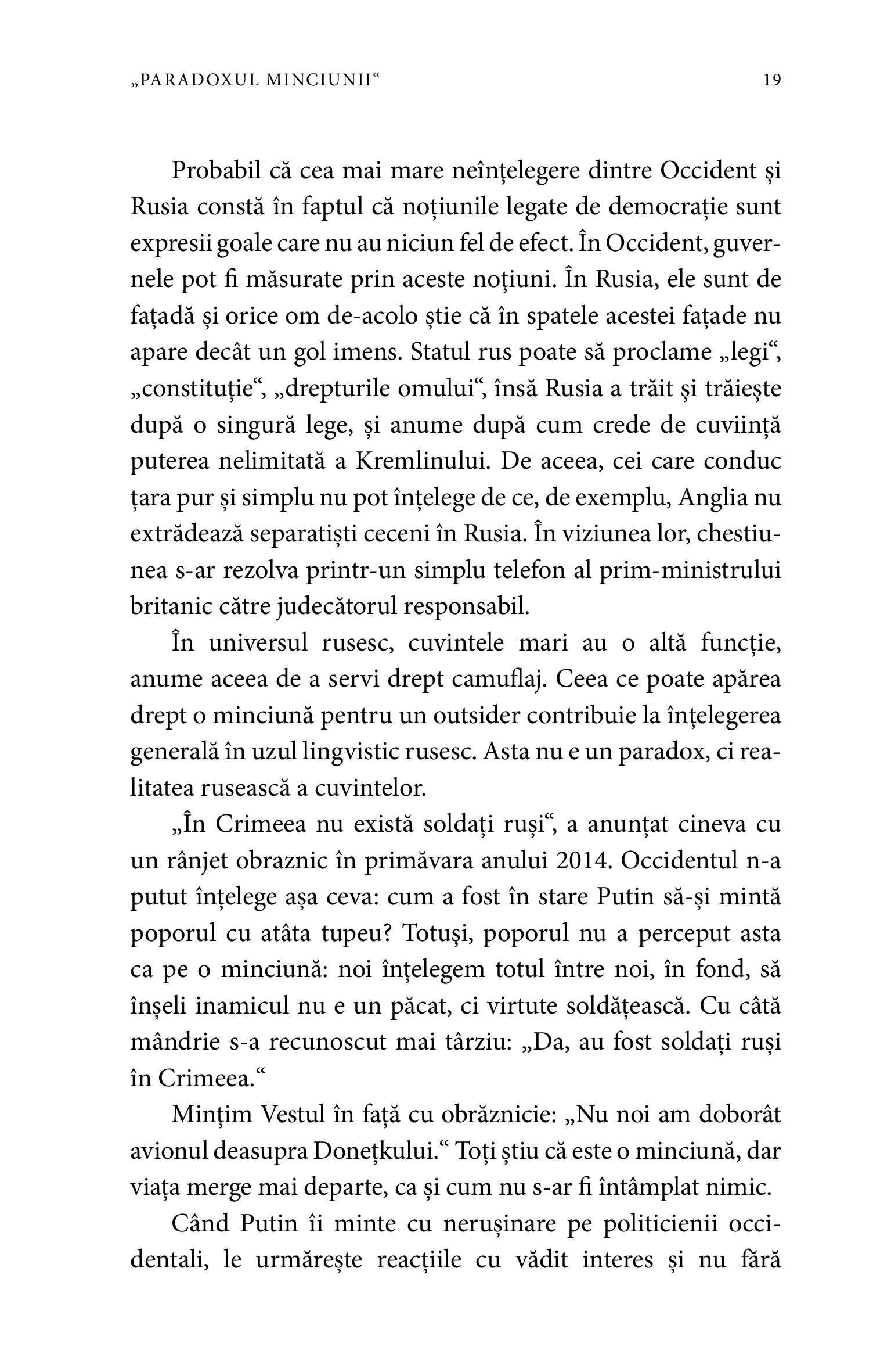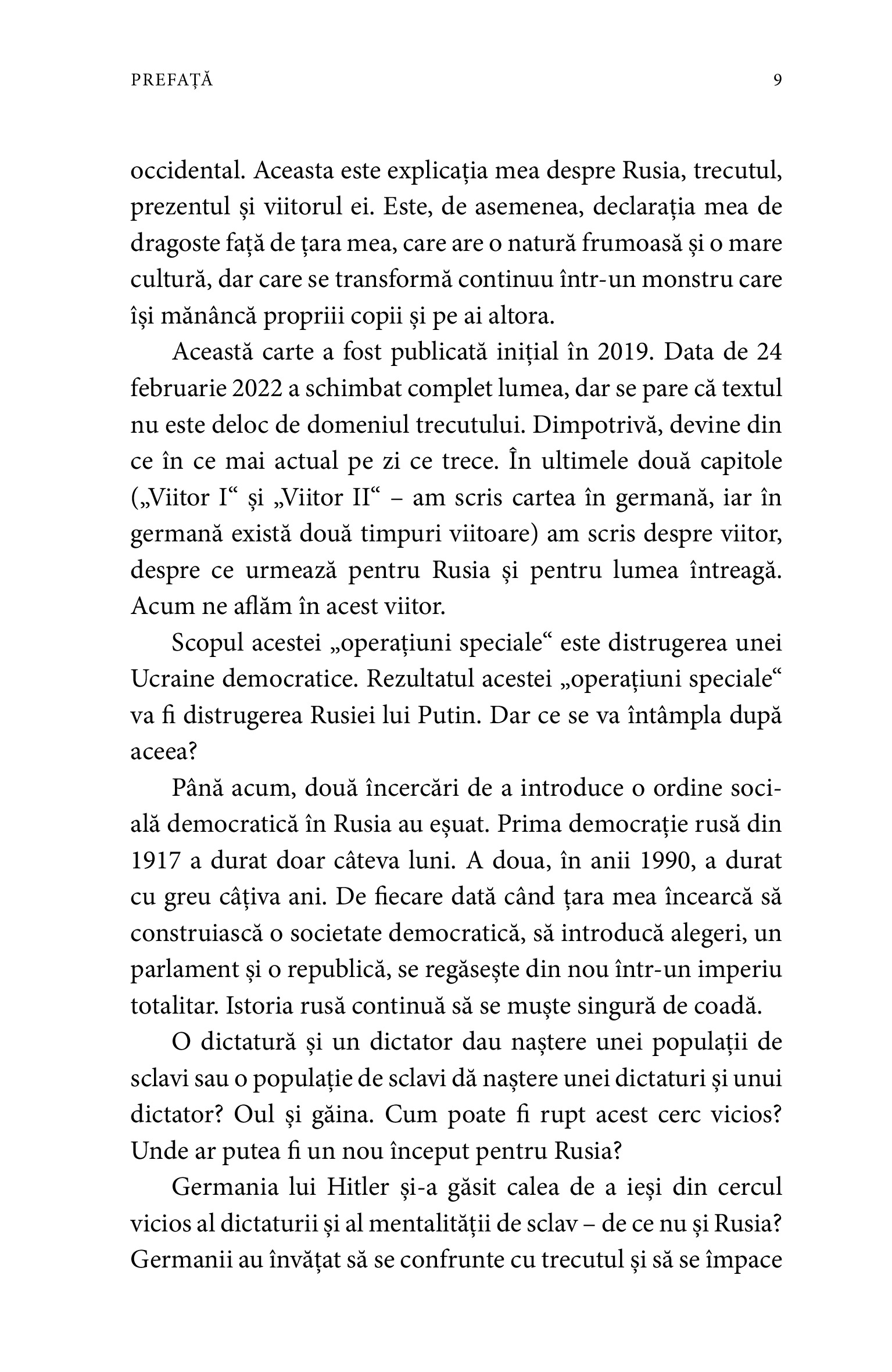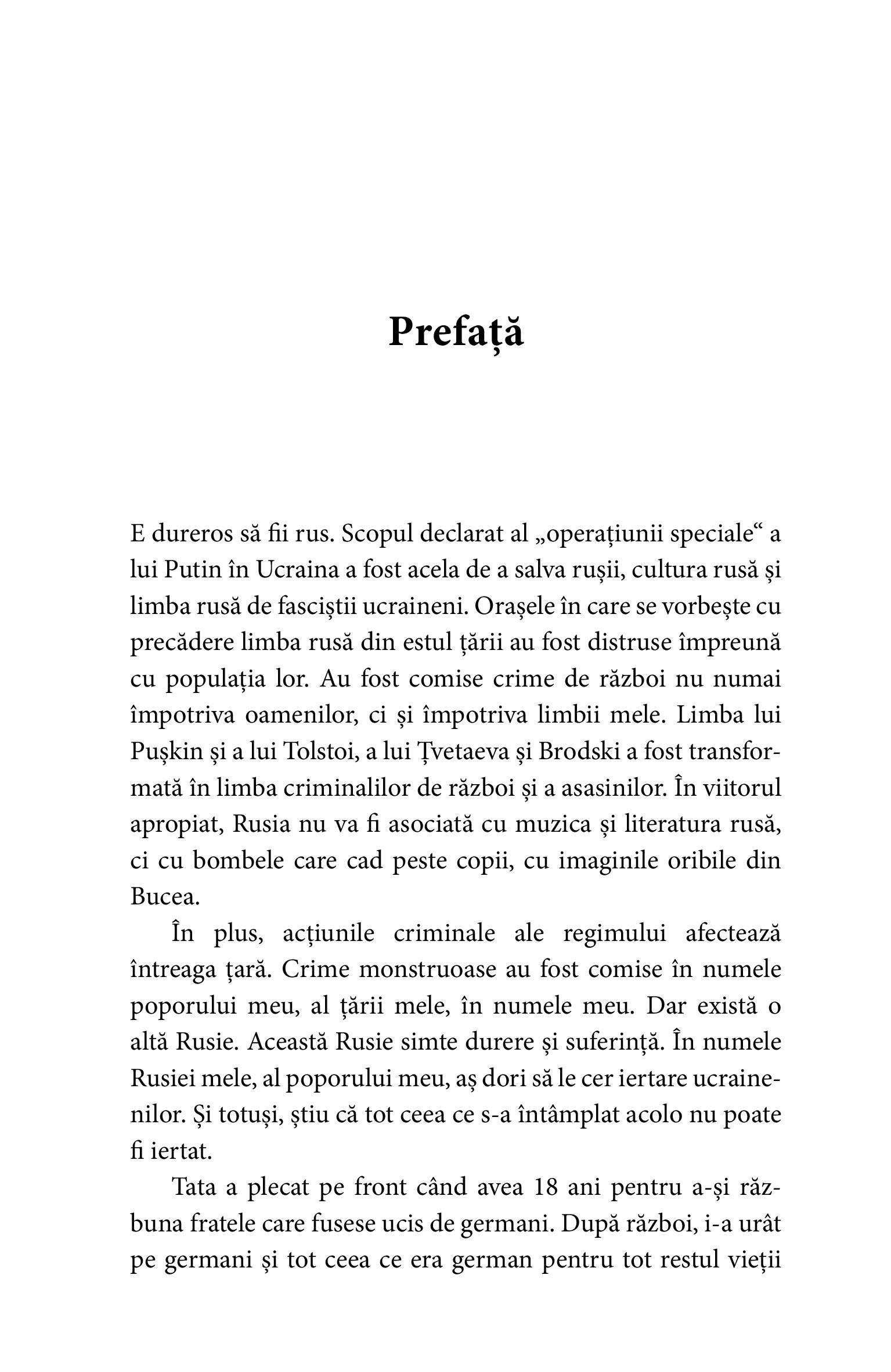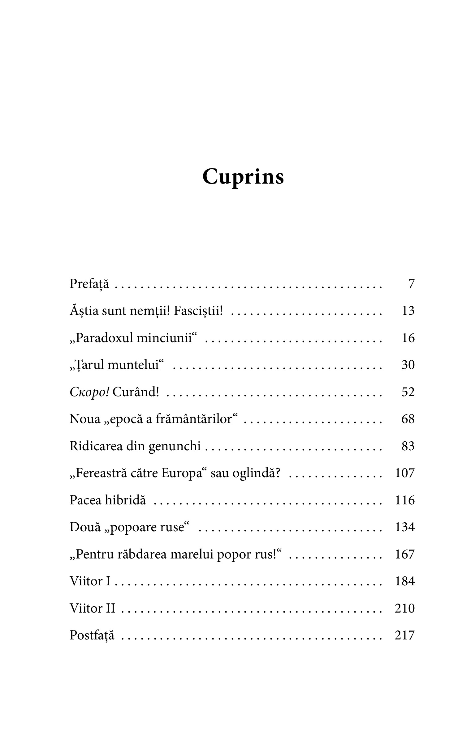 În acest eseu de o impresionantă luciditate, Mihail Șișkin demontează mitul conform căruia Rusia este o „enigmă învăluită într-un mister“ și susține că pur și simplu nu știm suficiente lucruri despre ea. Așadar, care este adevărata poveste din spatele regimului autocratic al lui Putin și al invaziei sale în Ucraina?