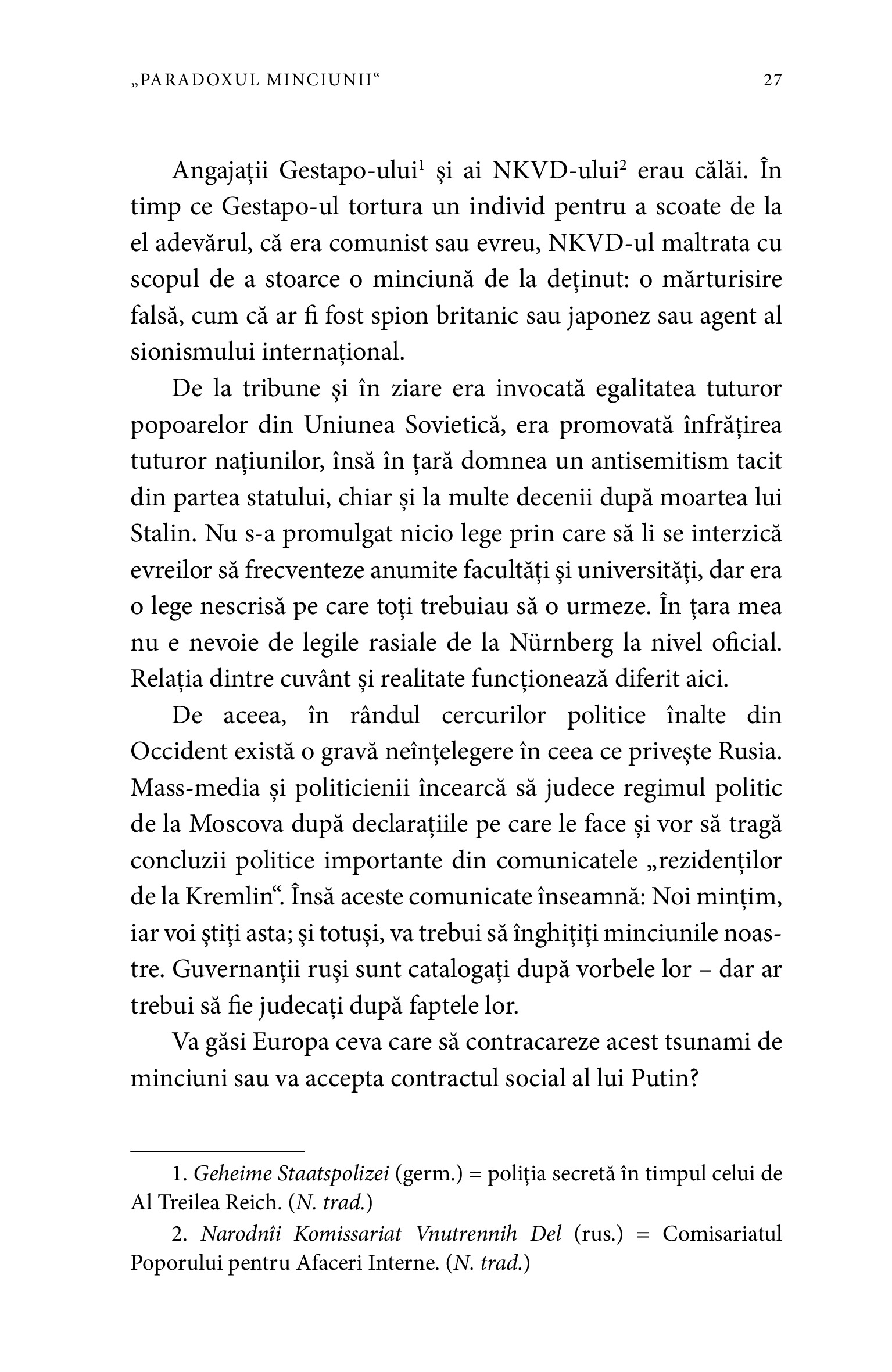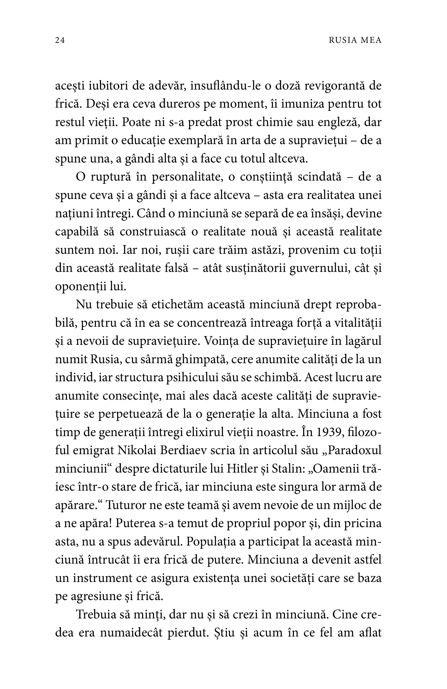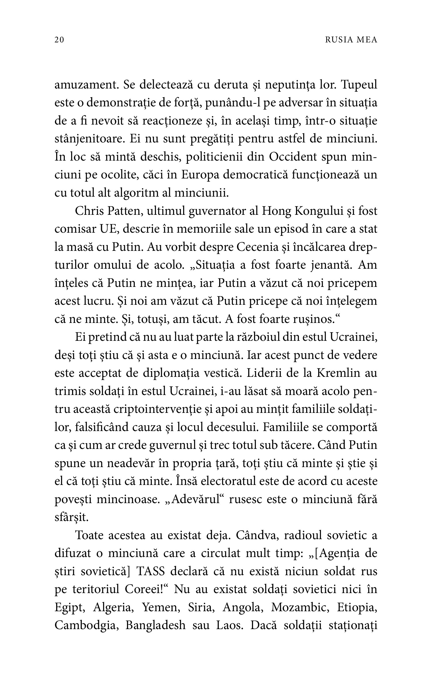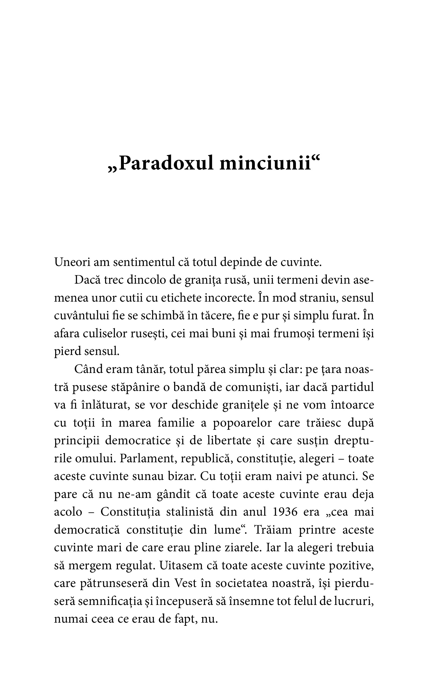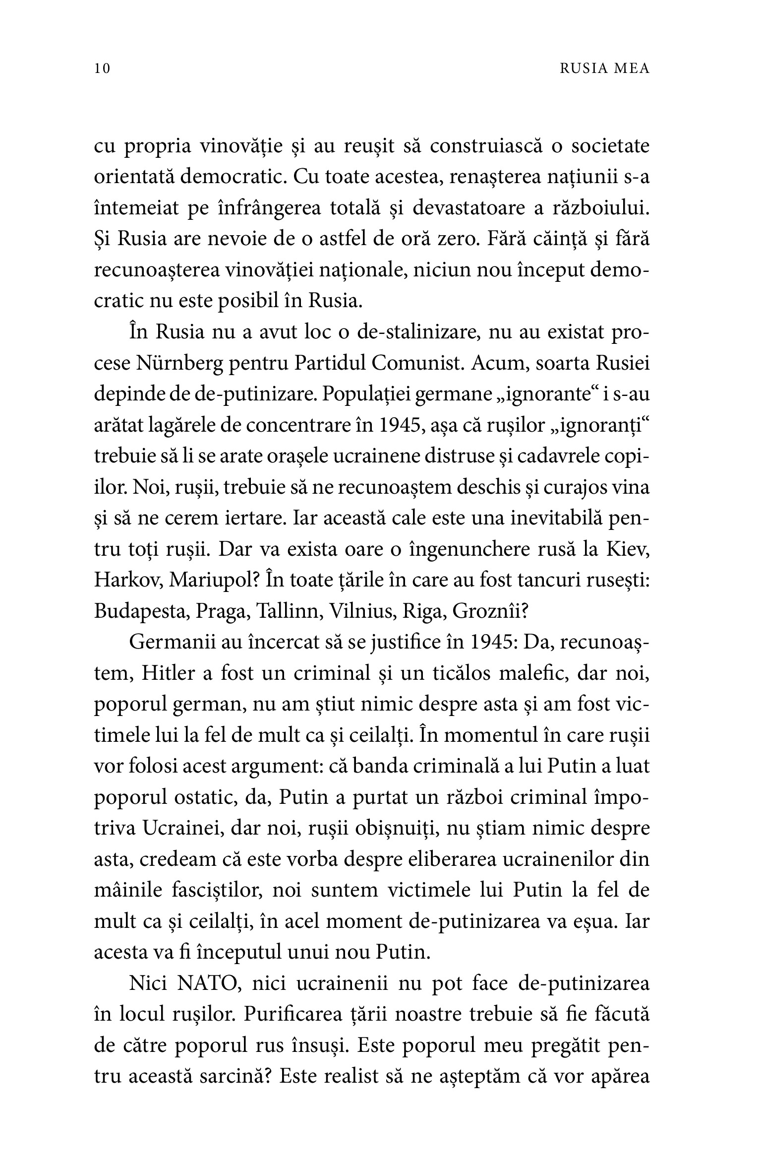 În acest eseu de o impresionantă luciditate, Mihail Șișkin demontează mitul conform căruia Rusia este o „enigmă învăluită într-un mister“ și susține că pur și simplu nu știm suficiente lucruri despre ea. Așadar, care este adevărata poveste din spatele regimului autocratic al lui Putin și al invaziei sale în Ucraina?