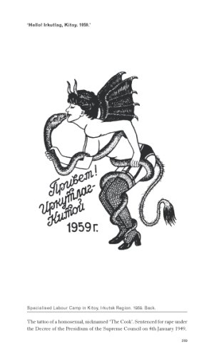 This final volume of previously unpublished drawings and photographs completes the Russian Criminal Tattoo Encyclopadia trilogy. Danzig Baldaev’s unparalleled ethnographic achievement, documenting over 3,000 tattoo drawings, was made during a lifetime working as a prison guard. The motifs depicted represent the uncensored lives of the criminal classes, ranging from violence and pornography to politics and alcohol. A medieval knight is surrounded by the severed heads of his enemies, a naked woman simultaneously services a man and two dwarfs, a crying President Gorbachev grips a human bone between sabre-like fangs, a group of angels drinks vodka with God on a cloud – the meanings of these arresting images are explained to the uninitiated eye. Accompanied by graphic photographs showing the grim reality of the Russian prison system and some of the alarming characters that inhabit it, the illustrated criminals of Russia tell the tale of their closed society.