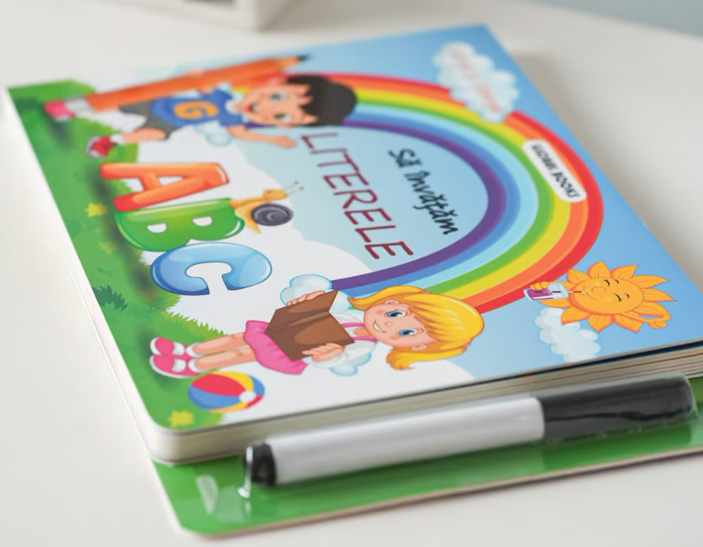 Cartea conține și o cariocă magică cu ajutorul căreia copilul poate exersa scrierea literelor și a primelor sale cuvinte, având posibilitatea să le rescrie ori de câte ori dorește.