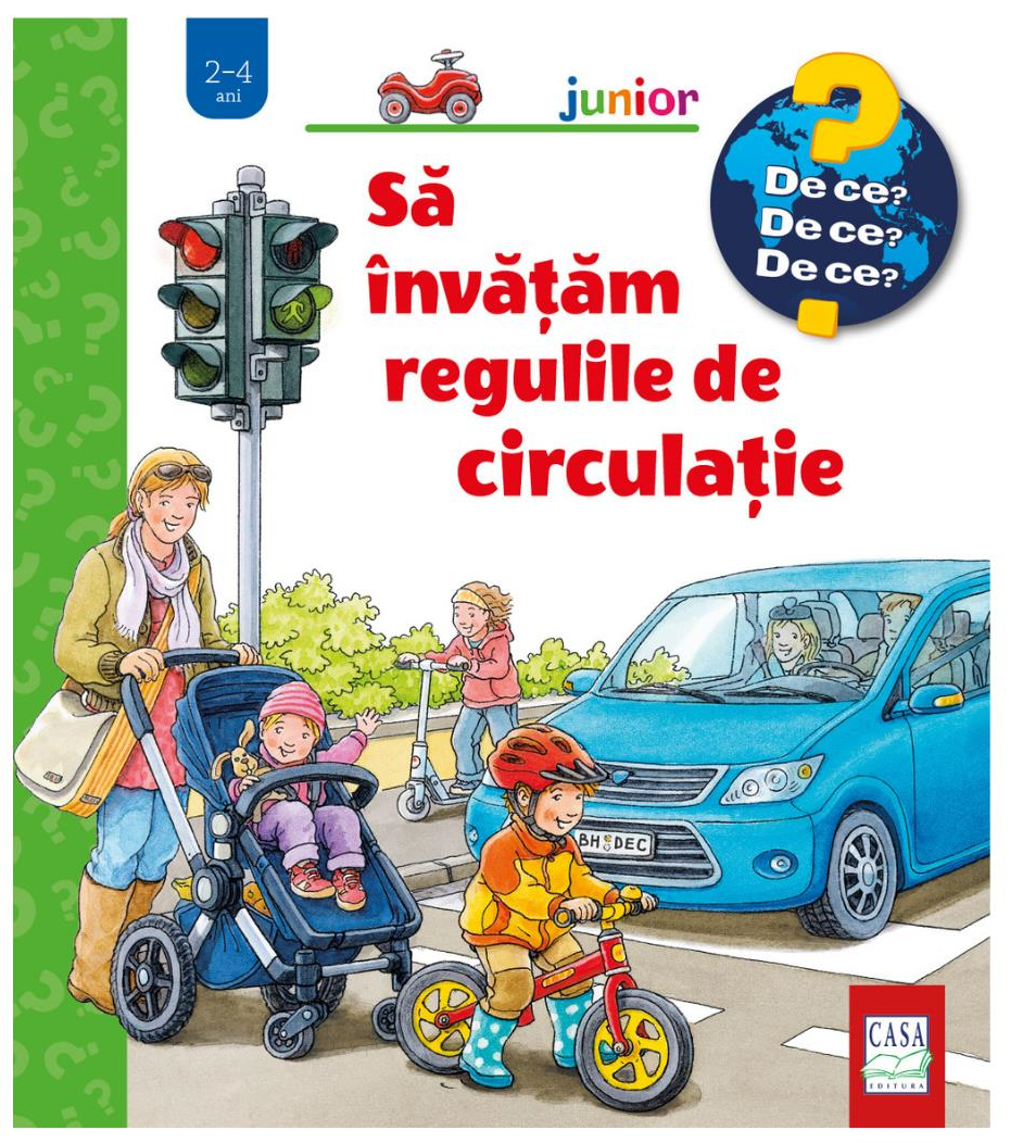 Răsfoind acest volum al seriei De ce? De ce? De ce?, cei mici fac cunoștință cu cele mai importante reguli de circulație pentru pietoni. Ei pot învăța cum să se comporte corect în agitația unui oraș, astfel încât toată lumea să ajungă în siguranță la destinație. Ei vor învața în mod jucăuș cum funcționează semafoarele, ce este o zebră, la ce servesc dungile reflectorizante și de ce trebuie să poarte o cască de protecție dacă circulă cu bicicleta.