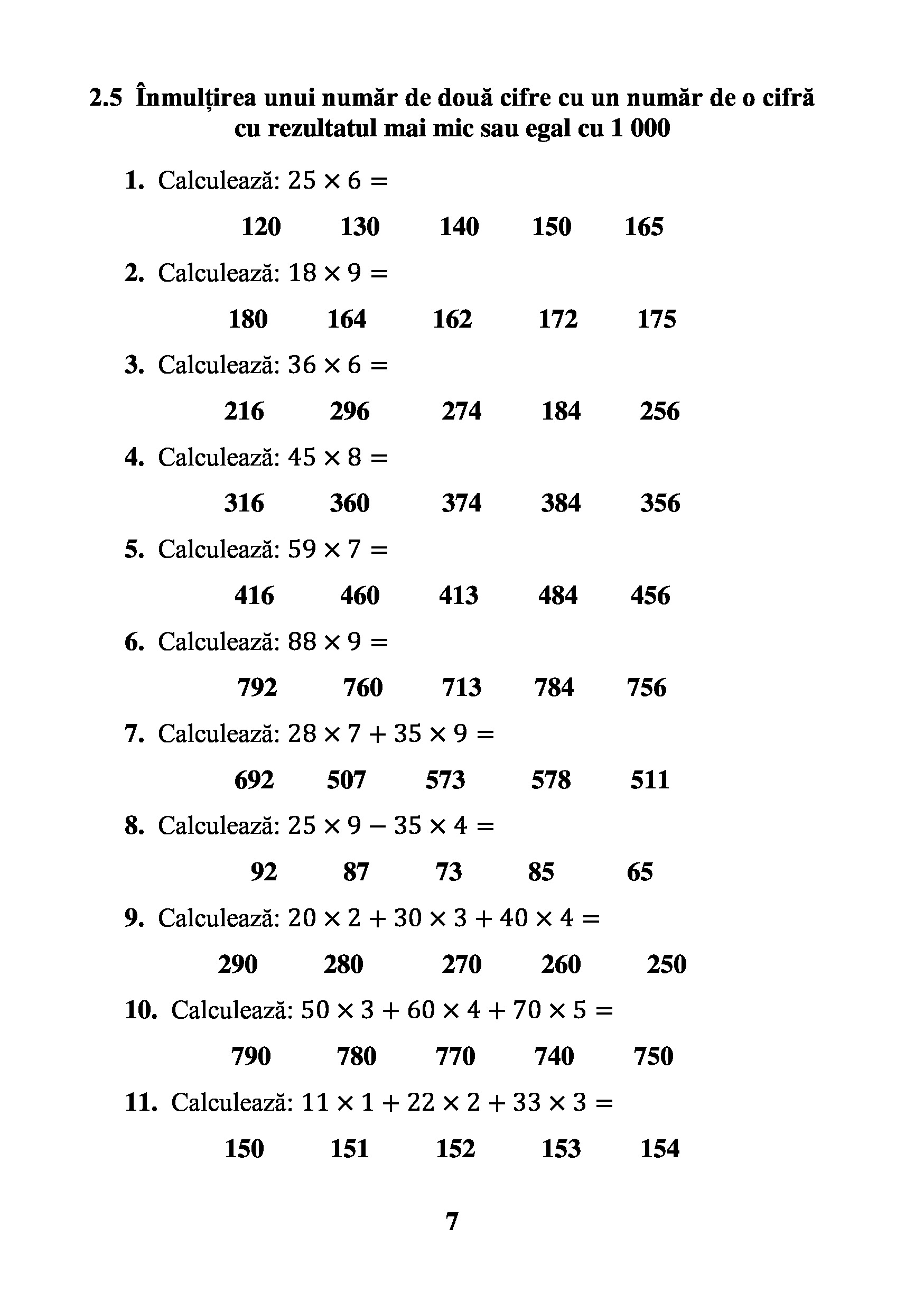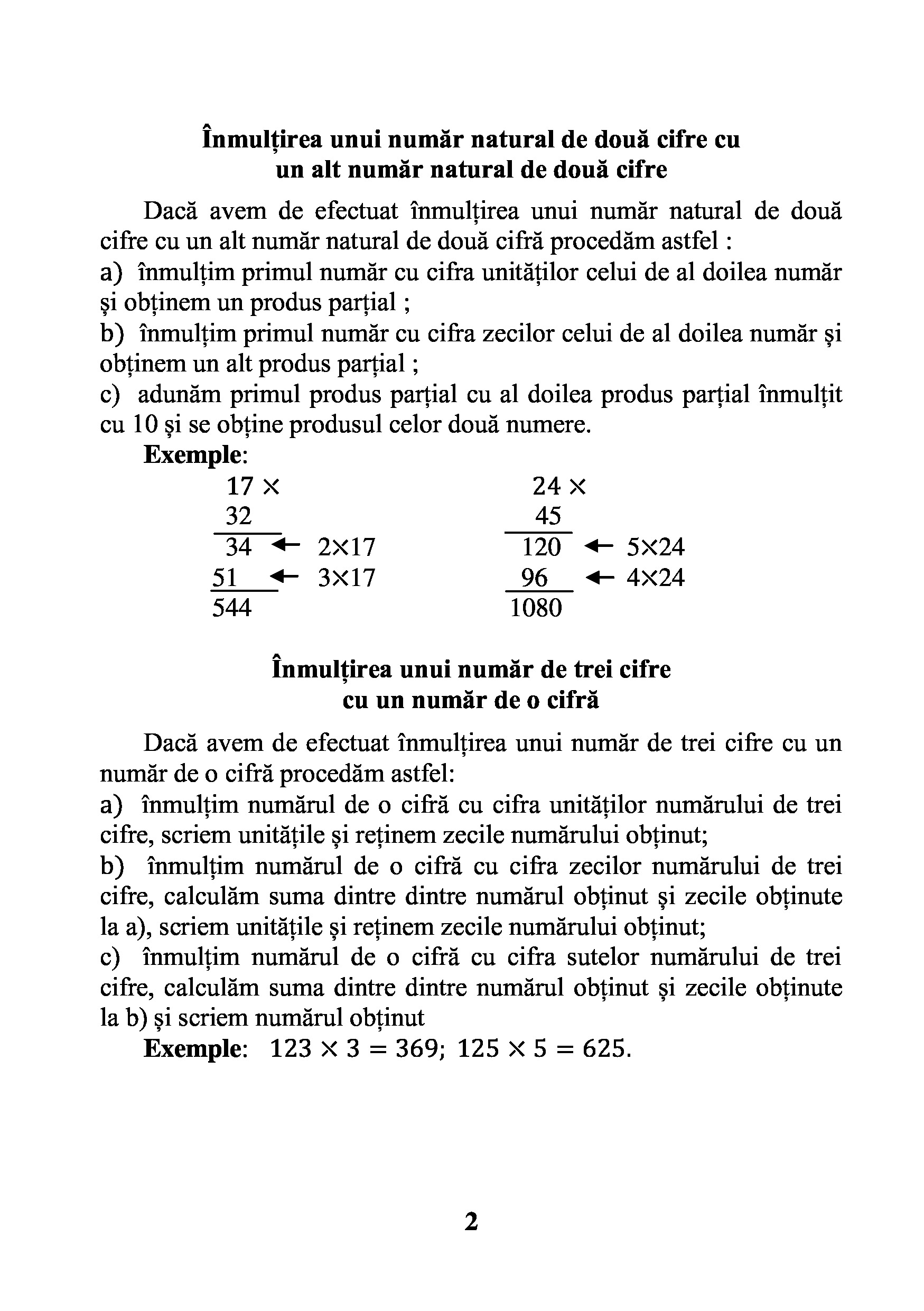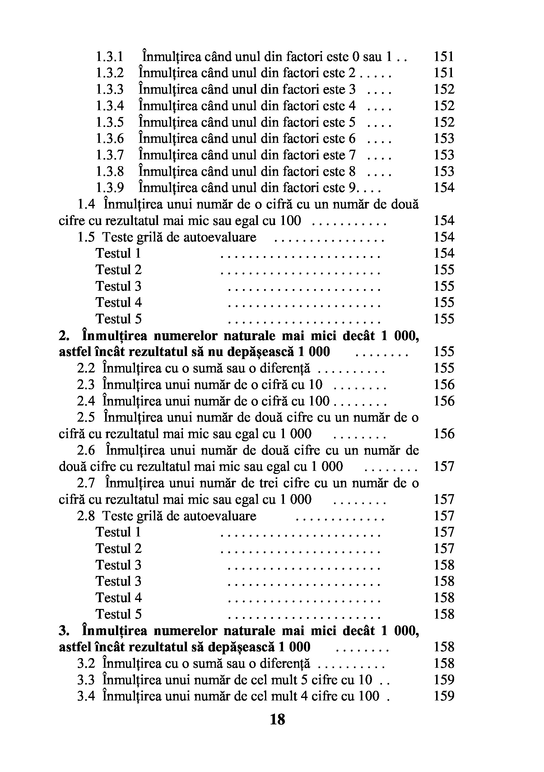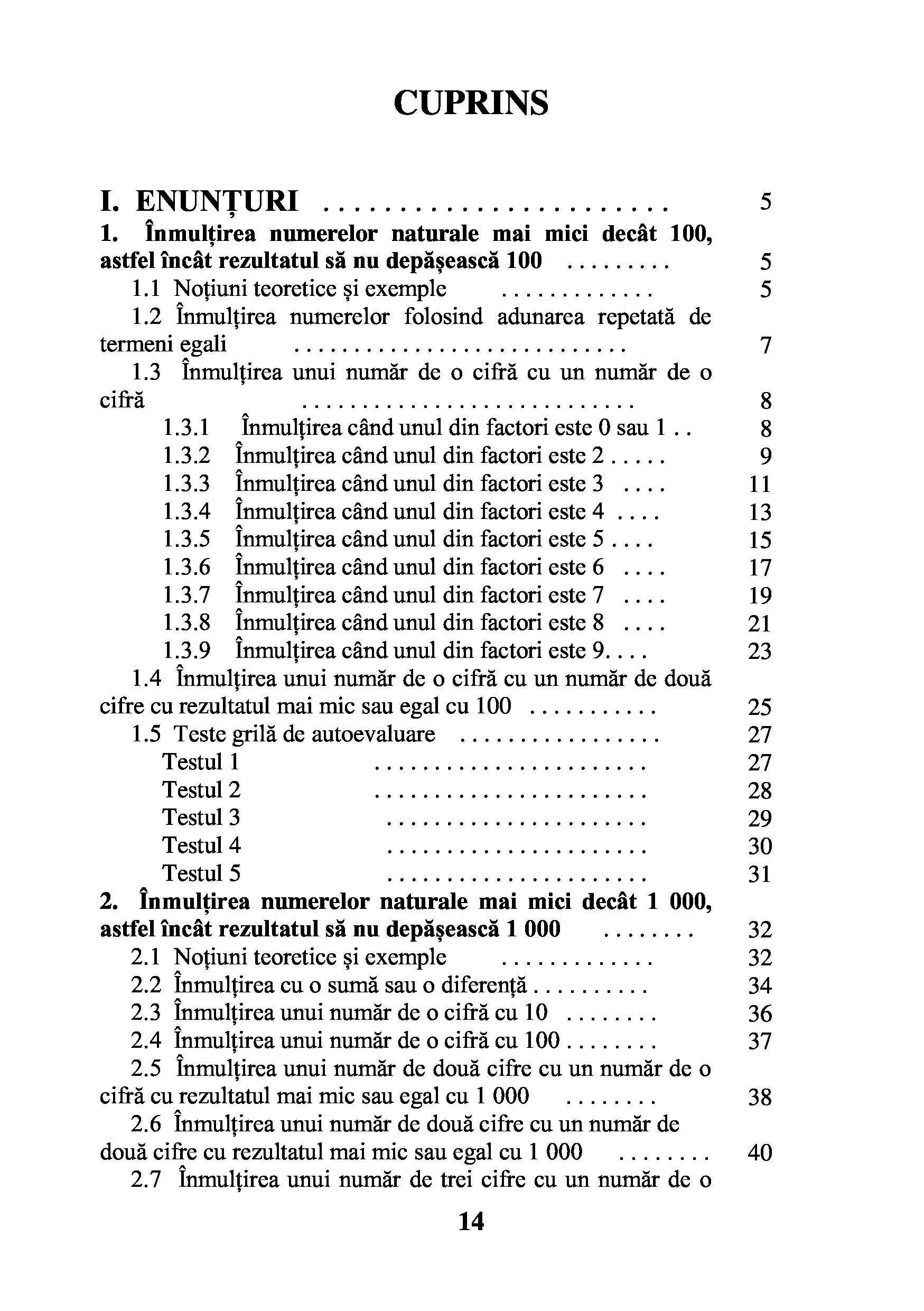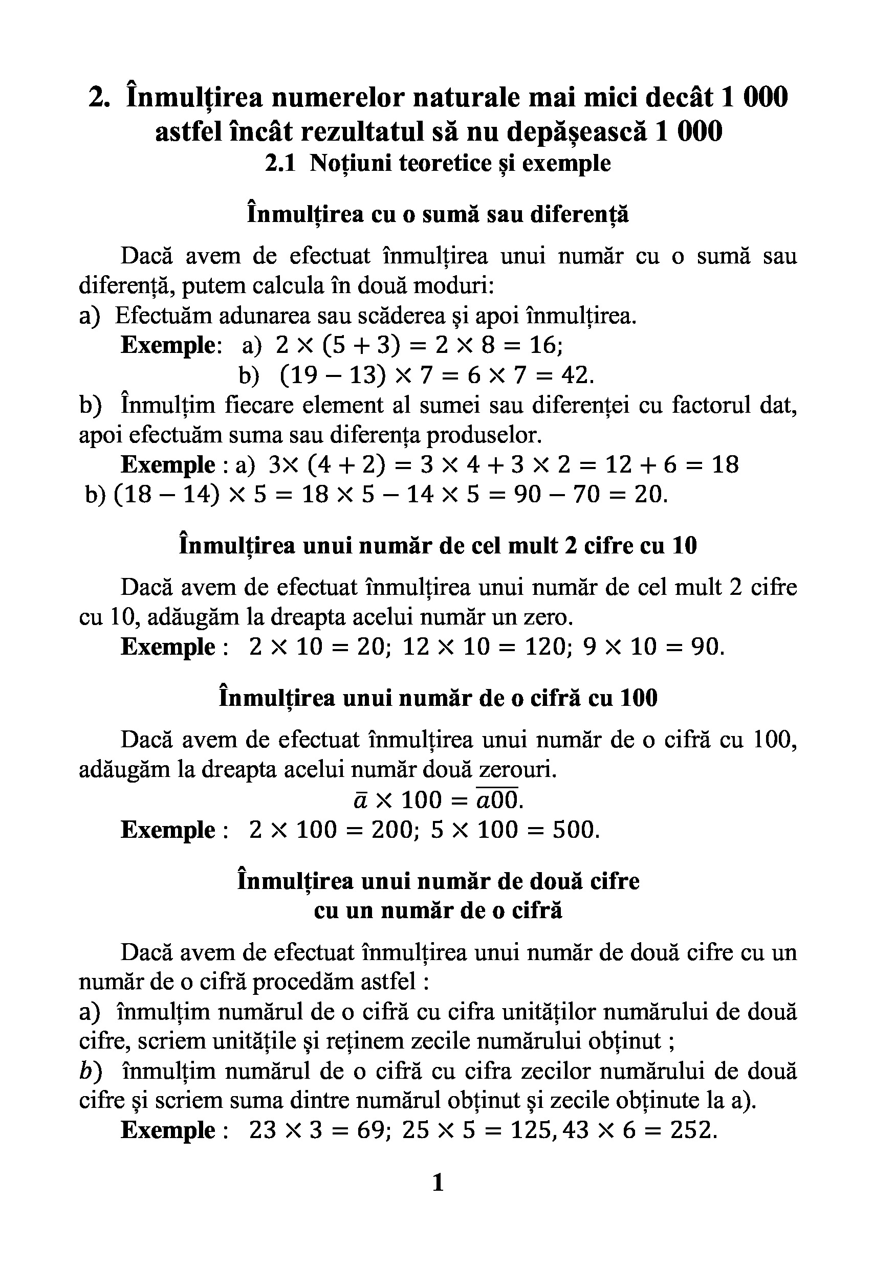 Fiecare capitol conține mai întâi noțiuni teoretice și exemple, care au ca scop acomodarea elevului cu partea teoretică necesară înțelegerii în profunzime a noțiunilor legate de înmulțirea numerelor respective.