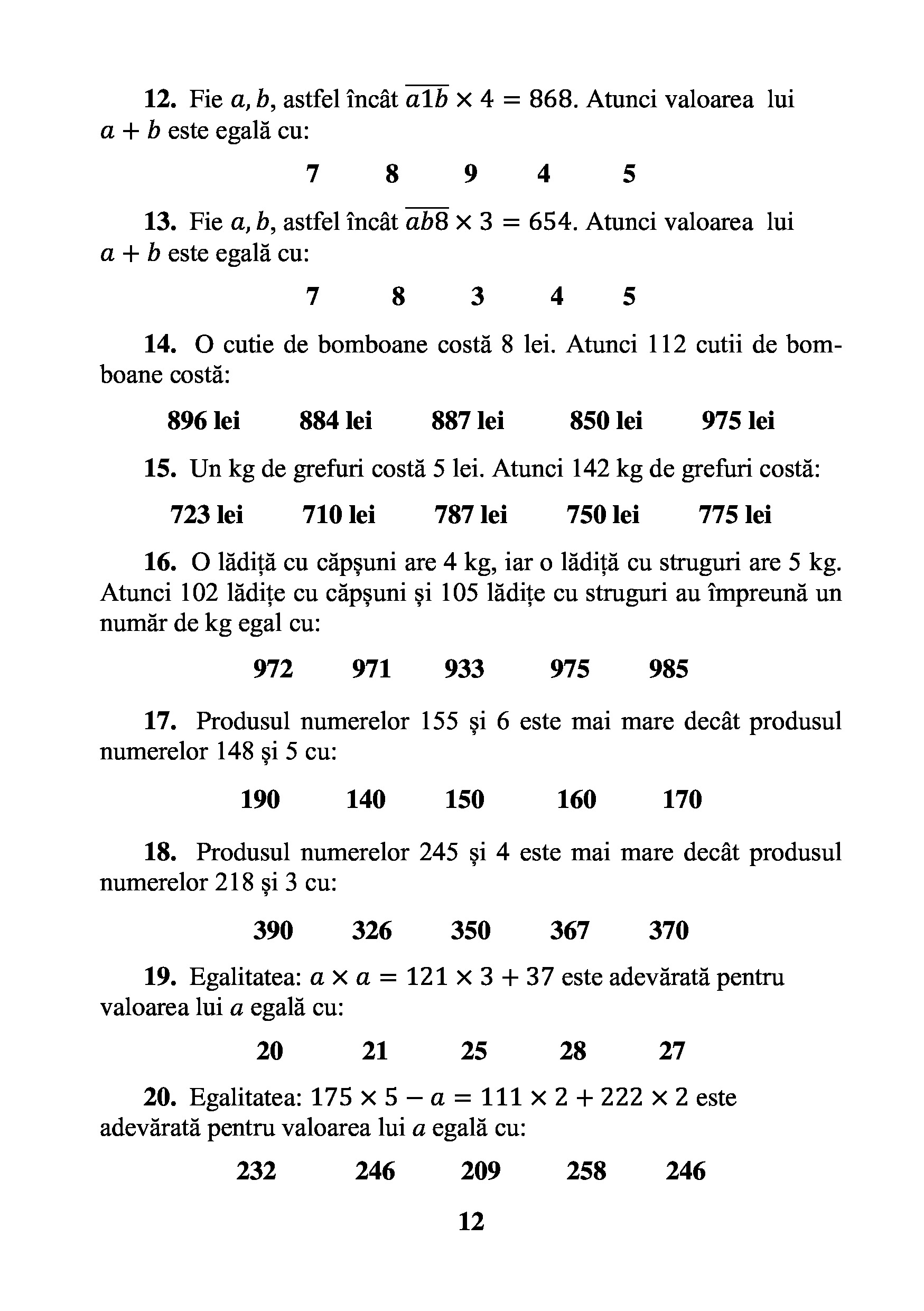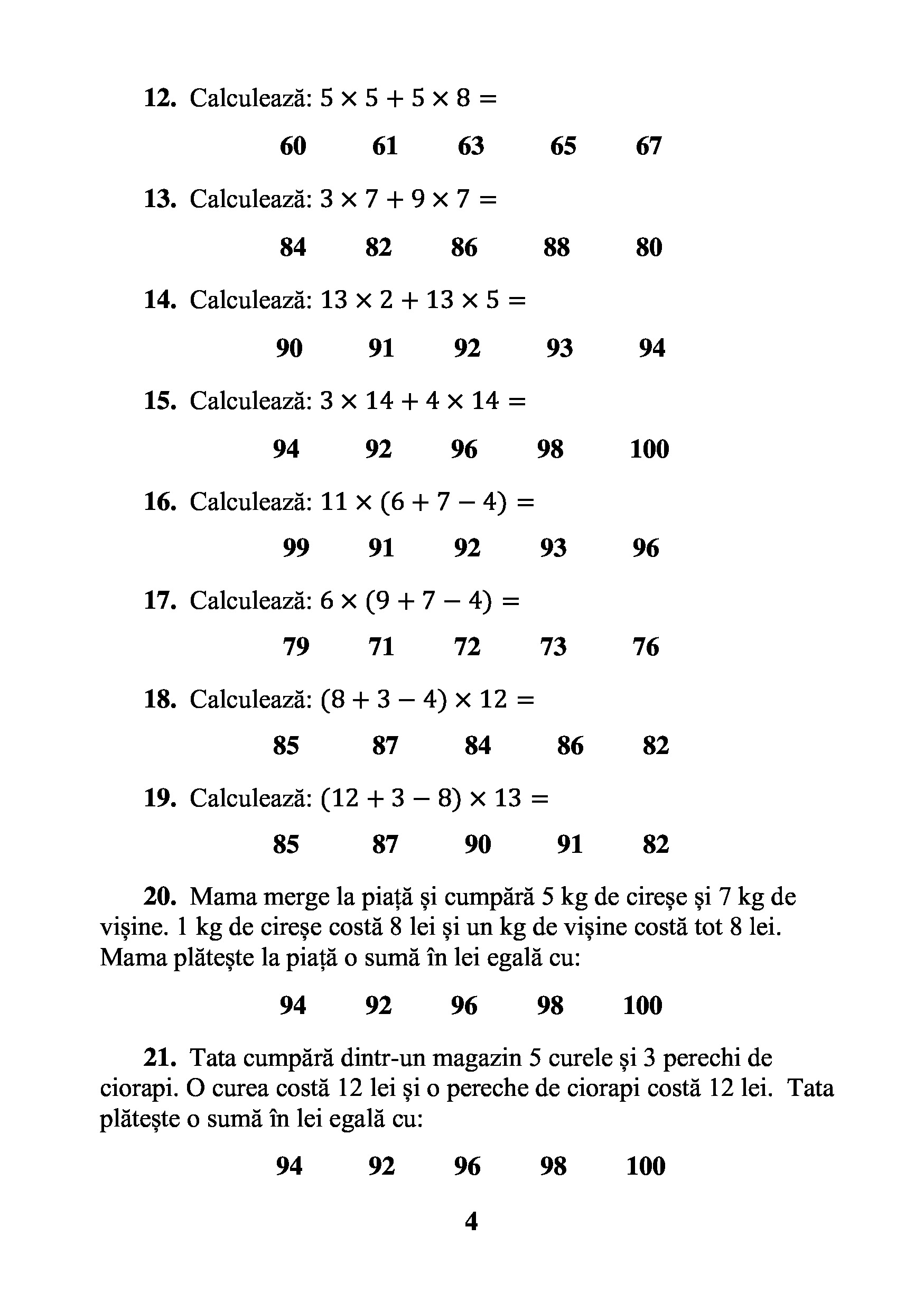 Clasa a II-a - Matematica, Clasa a III-a - Matematica, Clasa a IV-a - Matematica