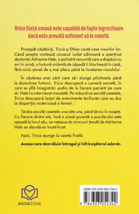 În căutarea unei cărți care să-i alunge plictiseala până la domolirea furtunii, Tricia descoperă o cameră secretă, în care se află înregistrări audio de la fiecare pacient pe care dr. Hale l-a intervievat vreodată. Pe măsură ce ascultă casetele, Tricia descoperă lanțul de evenimente terifiante care au dus la dispariția misterioasă a femeii.