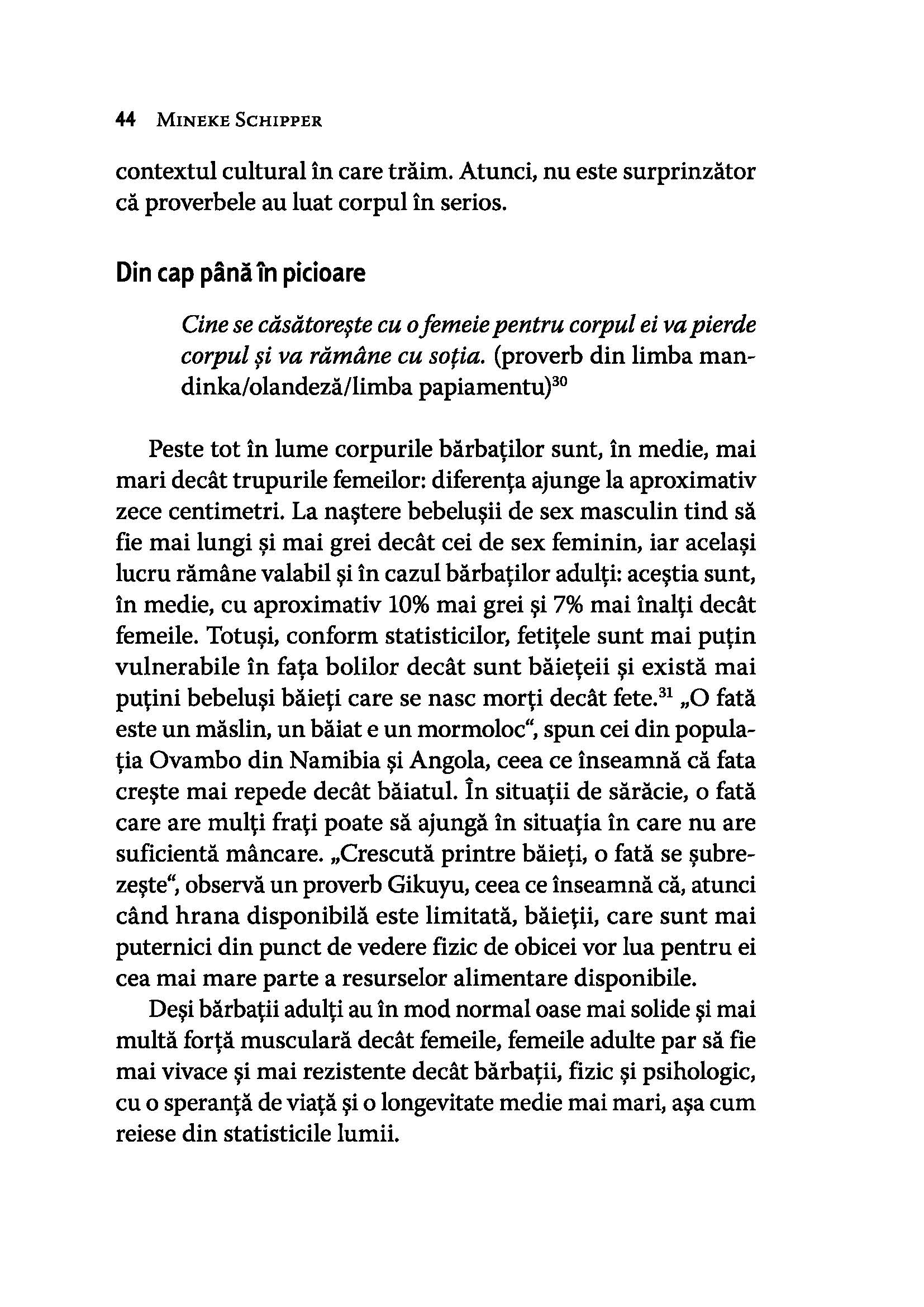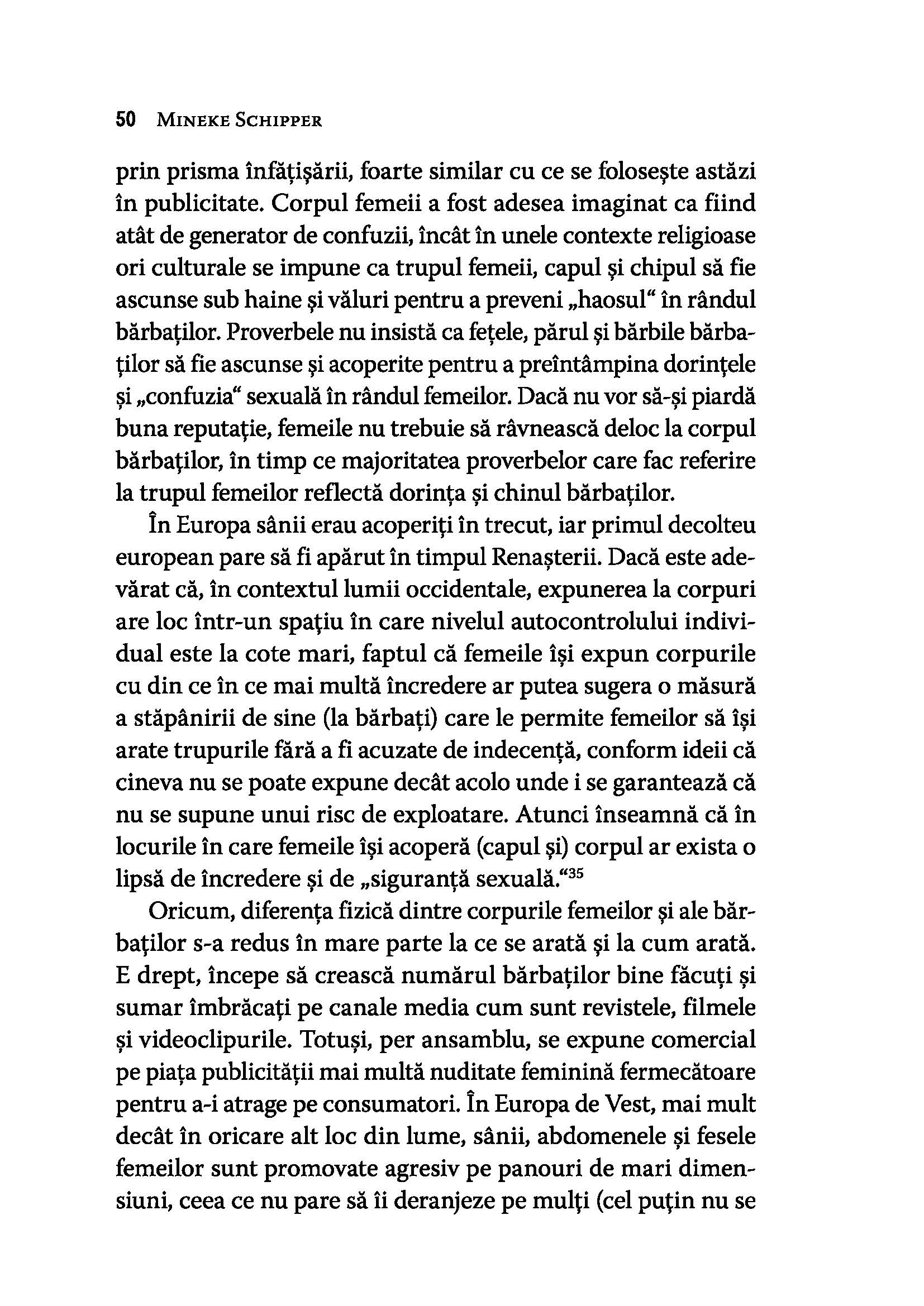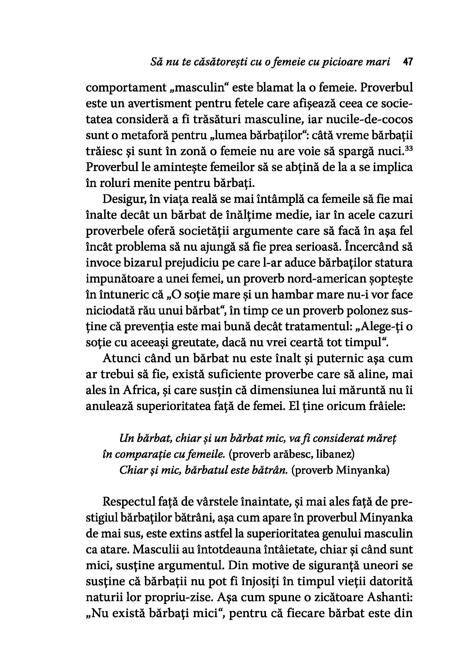 În toate culturile, sexul și genul și-au găsit expresia în cel mai concis gen literar, și anume în proverbe. Acestea oferă perspective revelatoare asupra condiției femeii de-a lungul secolelor și al continentelor, iar, în mod surprinzător, asemănările dintre miile de proverbe despre femei sunt mai numeroase decât diferențele.