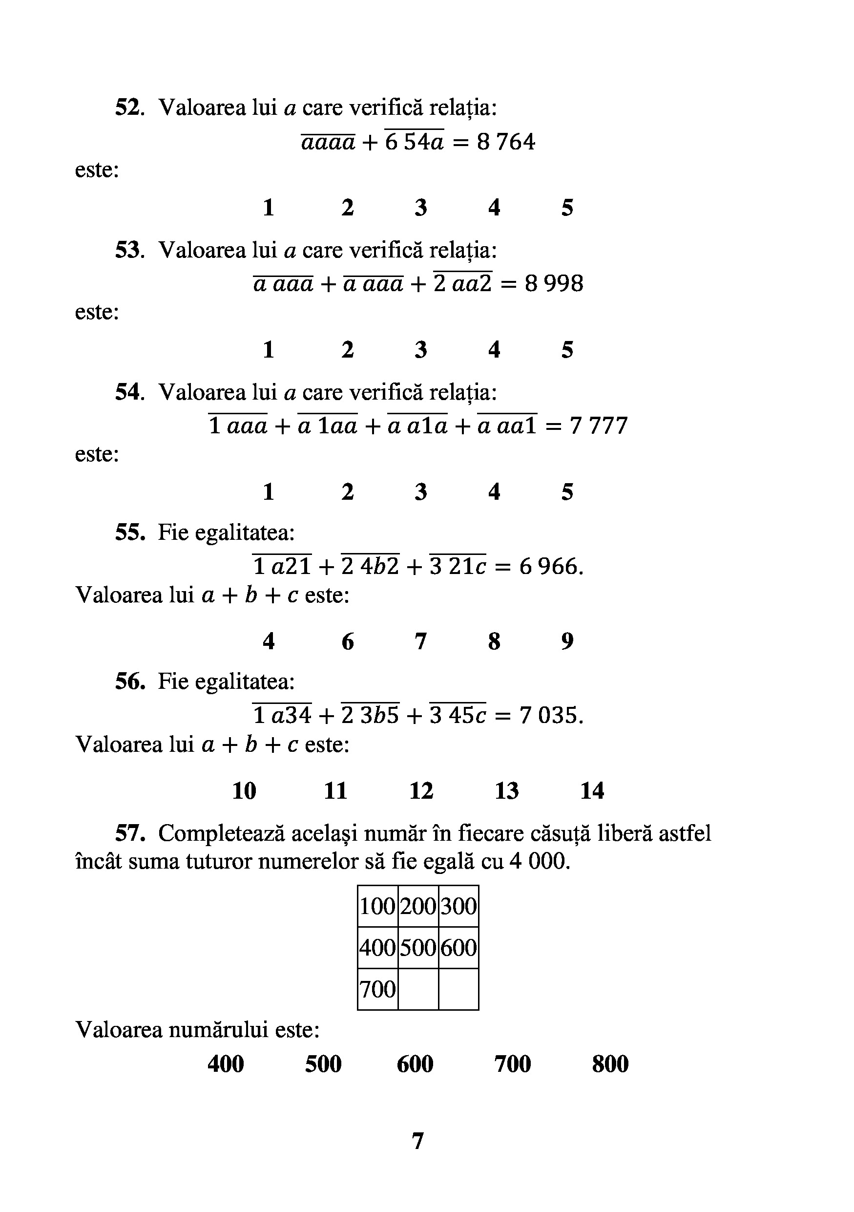 Toate problemele din această lucrare sunt probleme de tip grilă cu 5 răspunsuri posibile.
