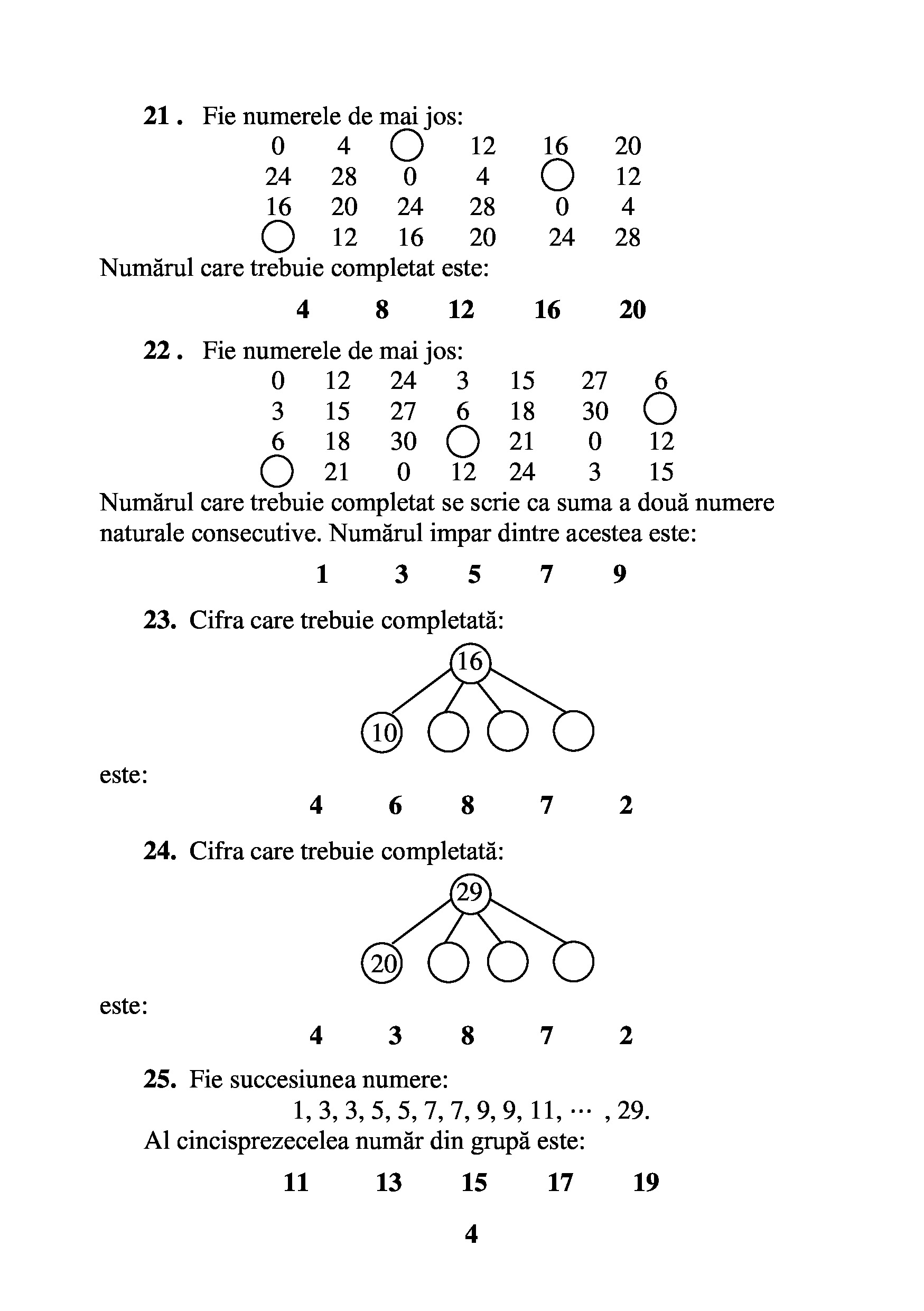 Toate problemele din această lucrare sunt probleme de tip grilă cu 5 răspunsuri posibile.