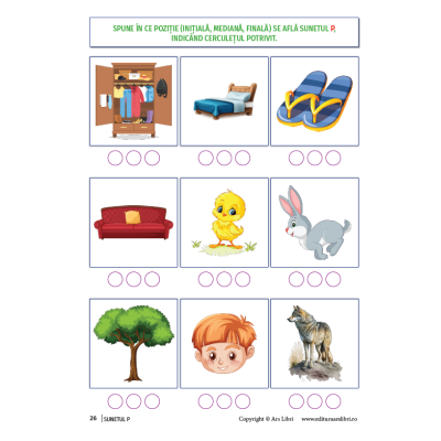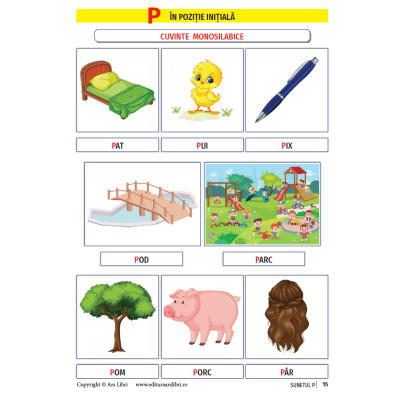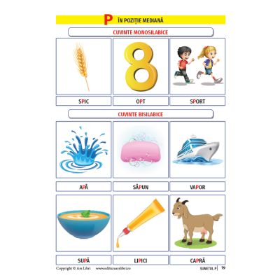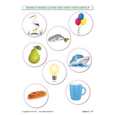 • Activități interactive: planșele includ activități interactive precum: asocierea cuvintelor cu imagini, identificarea și denumirea obiectelor din imagini, exerciții de pronunție.