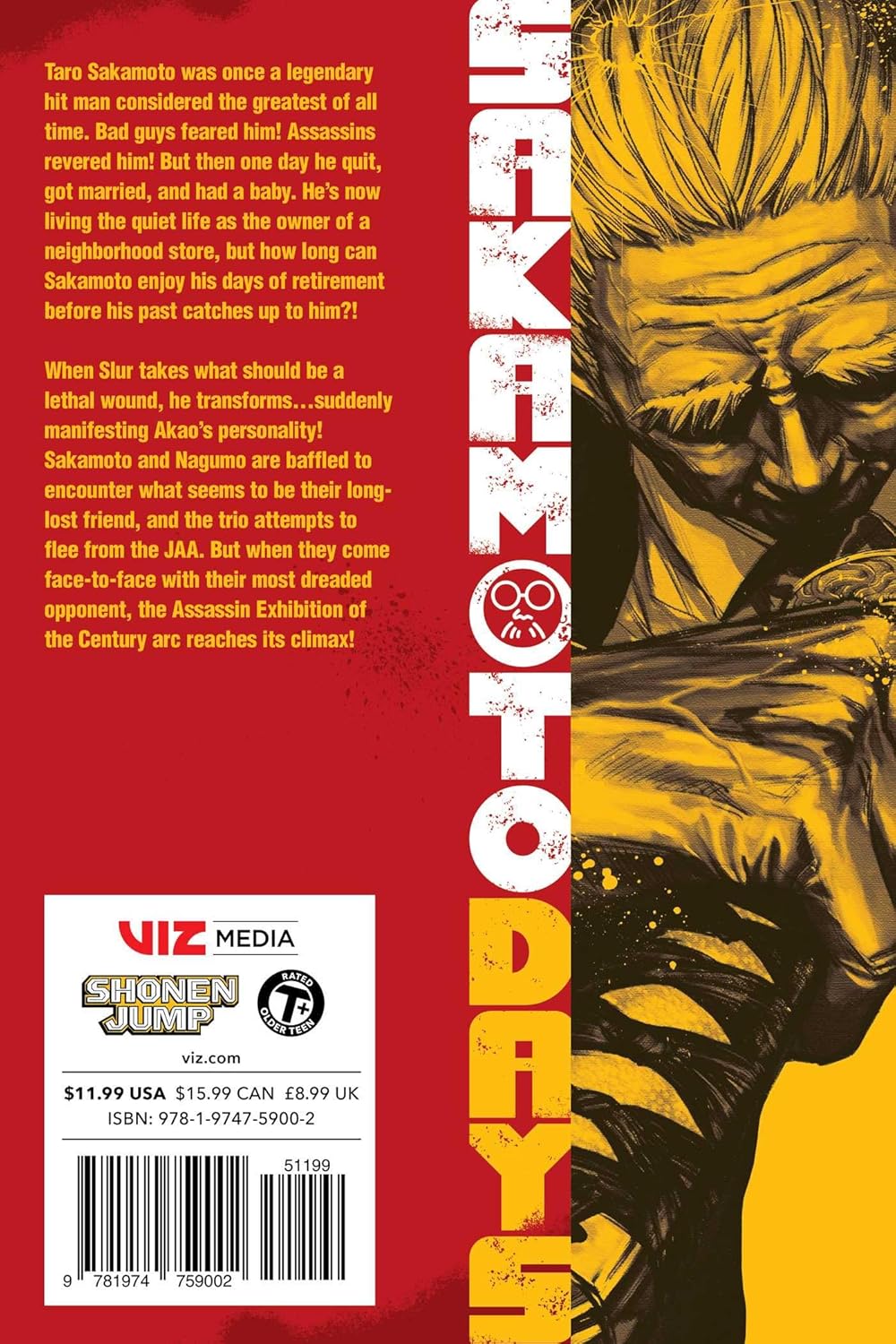When Slur takes what should be a lethal wound, he transforms…suddenly manifesting Akao’s personality! Sakamoto and Nagumo are baffled to encounter what seems to be their long-lost friend, and the trio attempts to flee from the JAA. But when they come face-to-face with their most dreaded opponent, the Assassin Exhibition of the Century arc reaches its climax!
