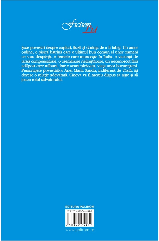 Personajele povestirilor Anei Maria Sandu, indiferent de vârstă, își doresc o relație adevărată. Cineva va fi mereu dispus să riște și să joace rolul salvatorului.
