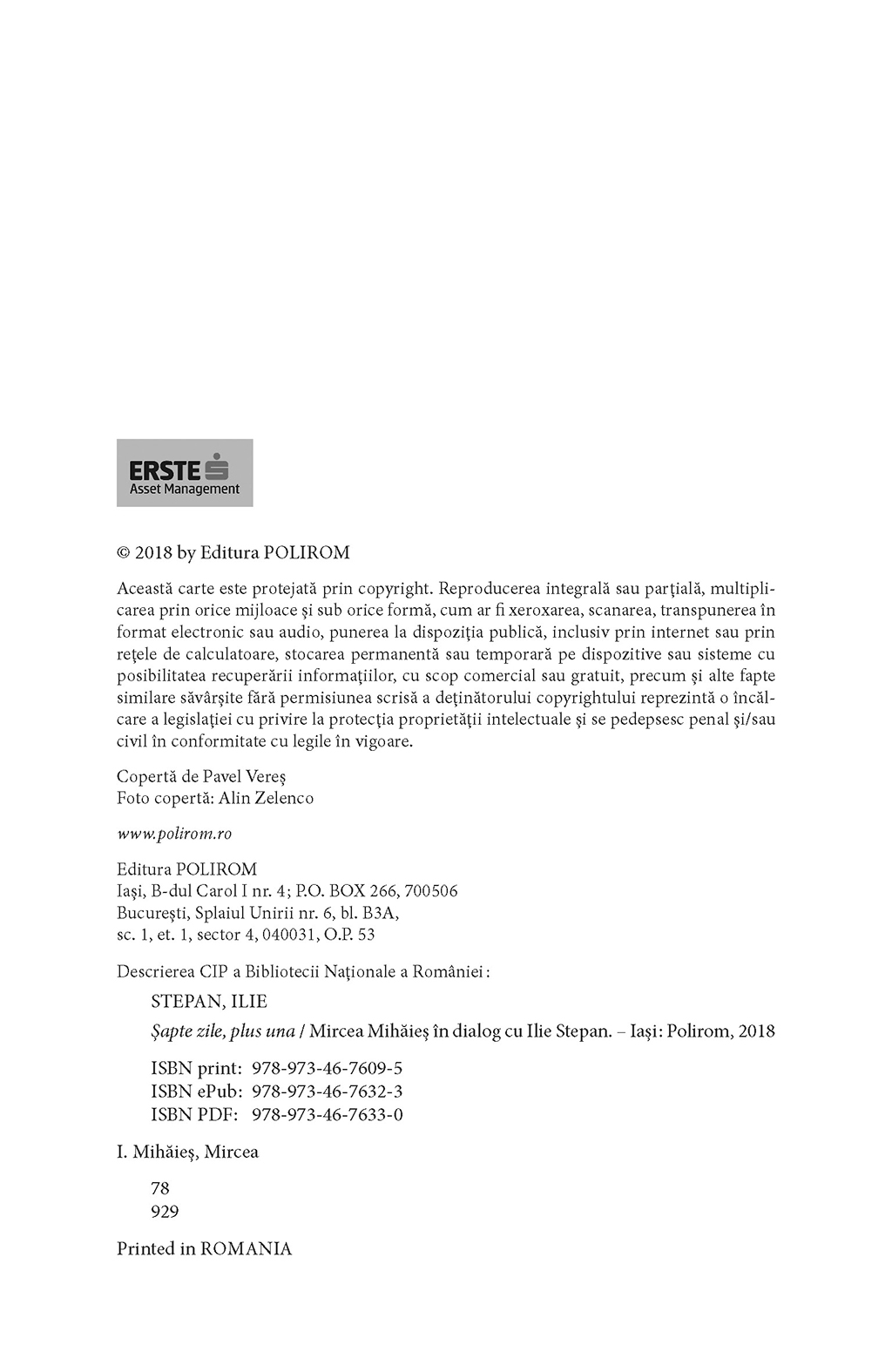 Volum apărut cu sprijinul SAI Erste Asset Management S.A.