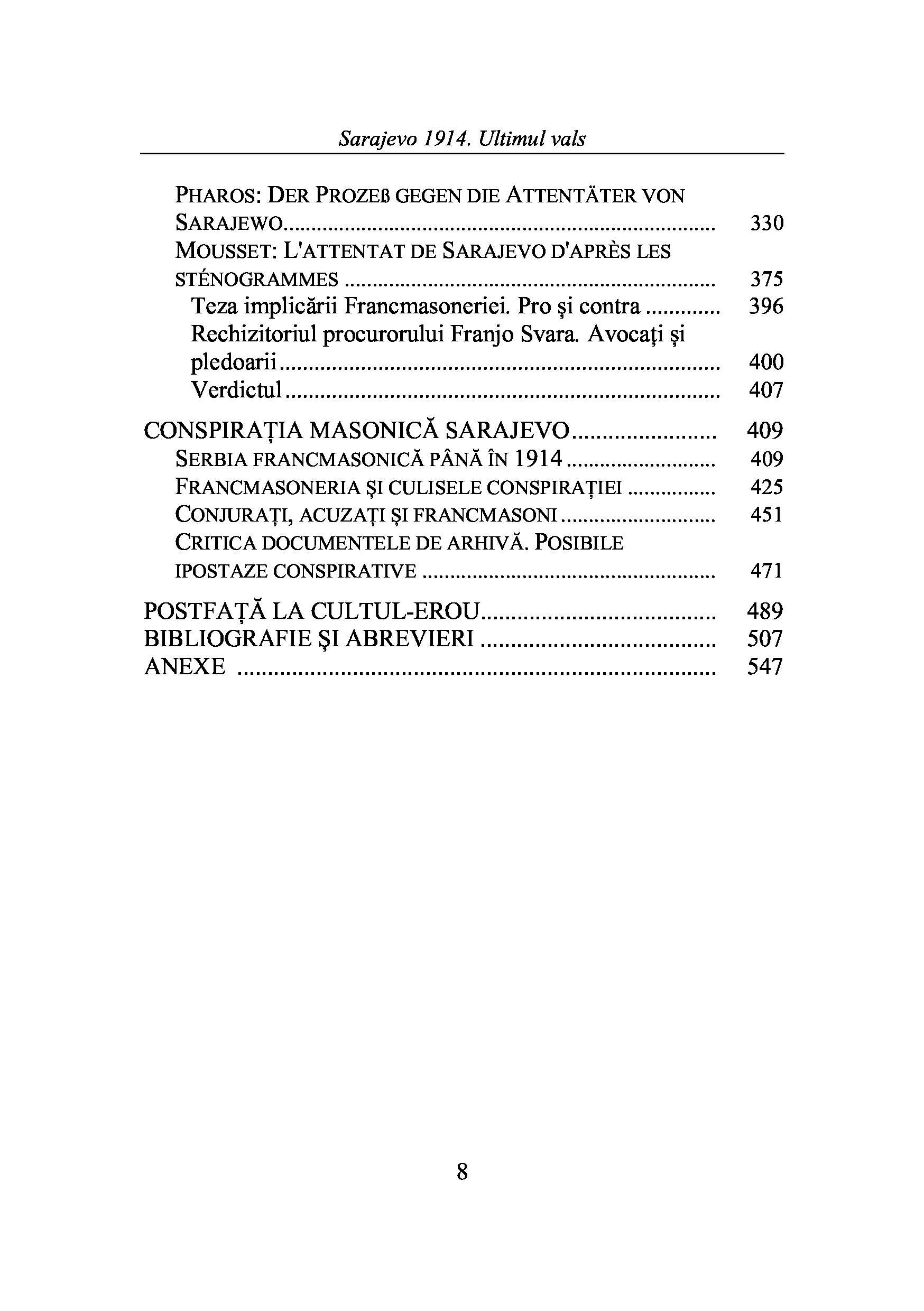 La 12 octombrie 1914, procesului din Sarajevo i s-a dat orientarea in acord cu politica diplomatica adoptata de Ballplatz, insistandu-se ca Francmasoneria a fost implicata in atentat. In procesul de la Salonic din 20 martie - 20 mai 1917, masoneria a fost din nou culpabilizata. Cu privire la implicare, la pregatirea atentatului de catre francmasoni, acuzatii au respins opinia juriului, toti sustinand ca aflasera despre apartenenta la Francmasonerie a unora dintre conjurati dupa ce au luat hotararea de a comite asasinatul. Au fost frecvente intrebarile prin care se urmarea sa se provoace raspunsuri prin care sa fie culpabilizata Francmasoneria. Marturisirile acuzatilor sunt consemnate in stenogramele procesului.