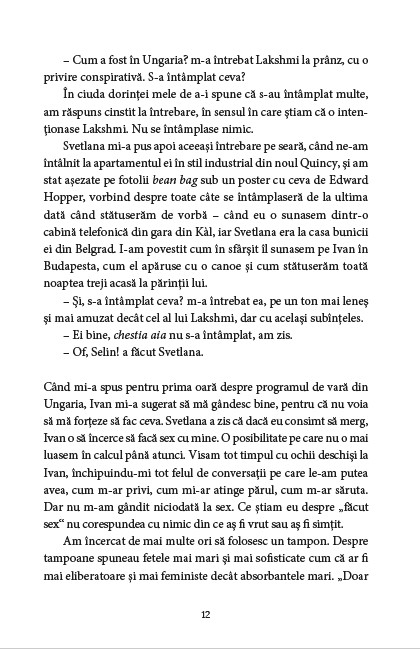 Selin este o naratoare dezarmantă, care transmite pe nerăsuflate perspective revelatoare, emoționante și extrem de amuzante – uneori toate în același timp –, și e palpitant să o urmărești transformându-se în autoarea propriei povești. Un nou roman încântător de cerebral și de generos, de la o voce distinctă a ficțiunii contemporane.