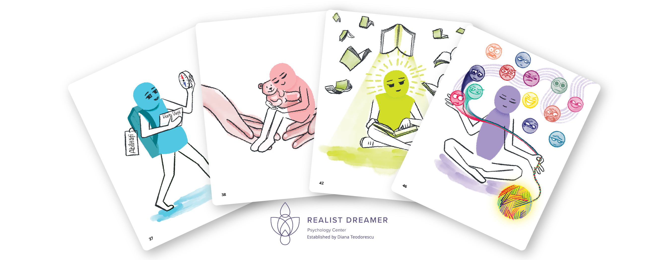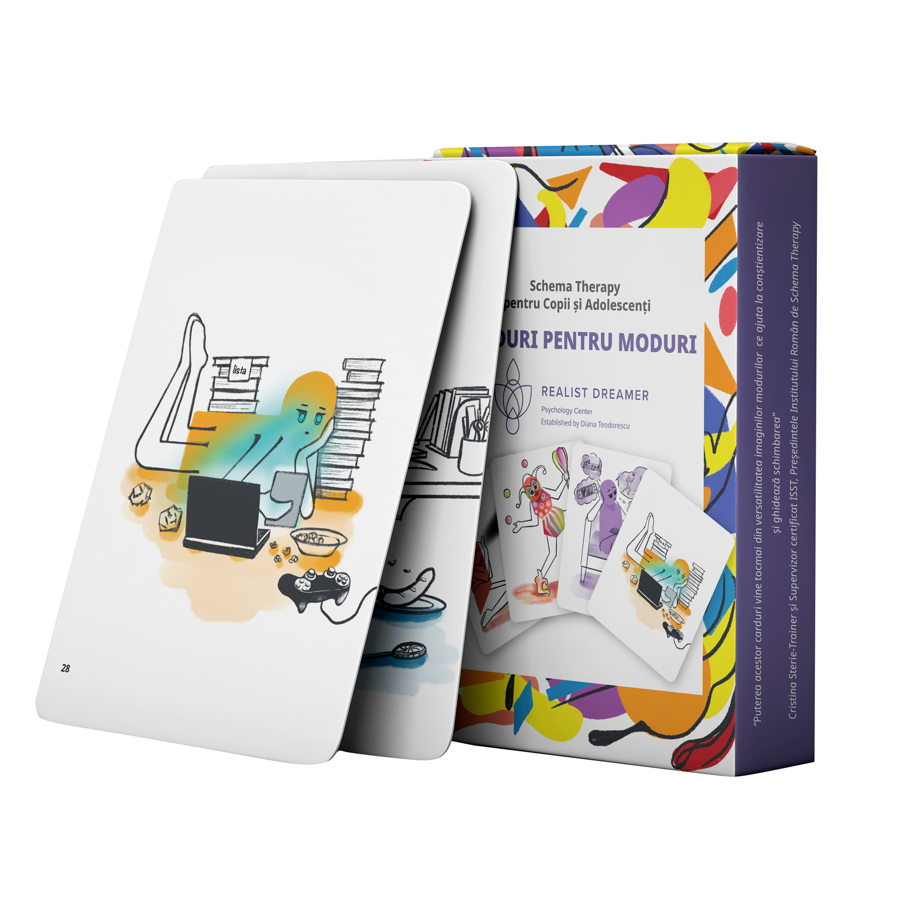 Set de carduri extrem de utile în psihoterapia cu copii și adolescenți, pentru a descoperi și explora diferitele părți ale lumii lor interioare, atât de fascinantă și plină de complexitate. Stilul de design a pornit de la ideea de a fi simple, fără elemente specifice de gen, vârstă sau cultură. Pot fi folosite pentru conceptualizarea de caz și pentru implementarea protocolului Schema Therapy, însă datorită versatilității și diversității lor, pot fi folosite cu creativitate în orice protocol terapeutic, inclusiv cu adulții.
