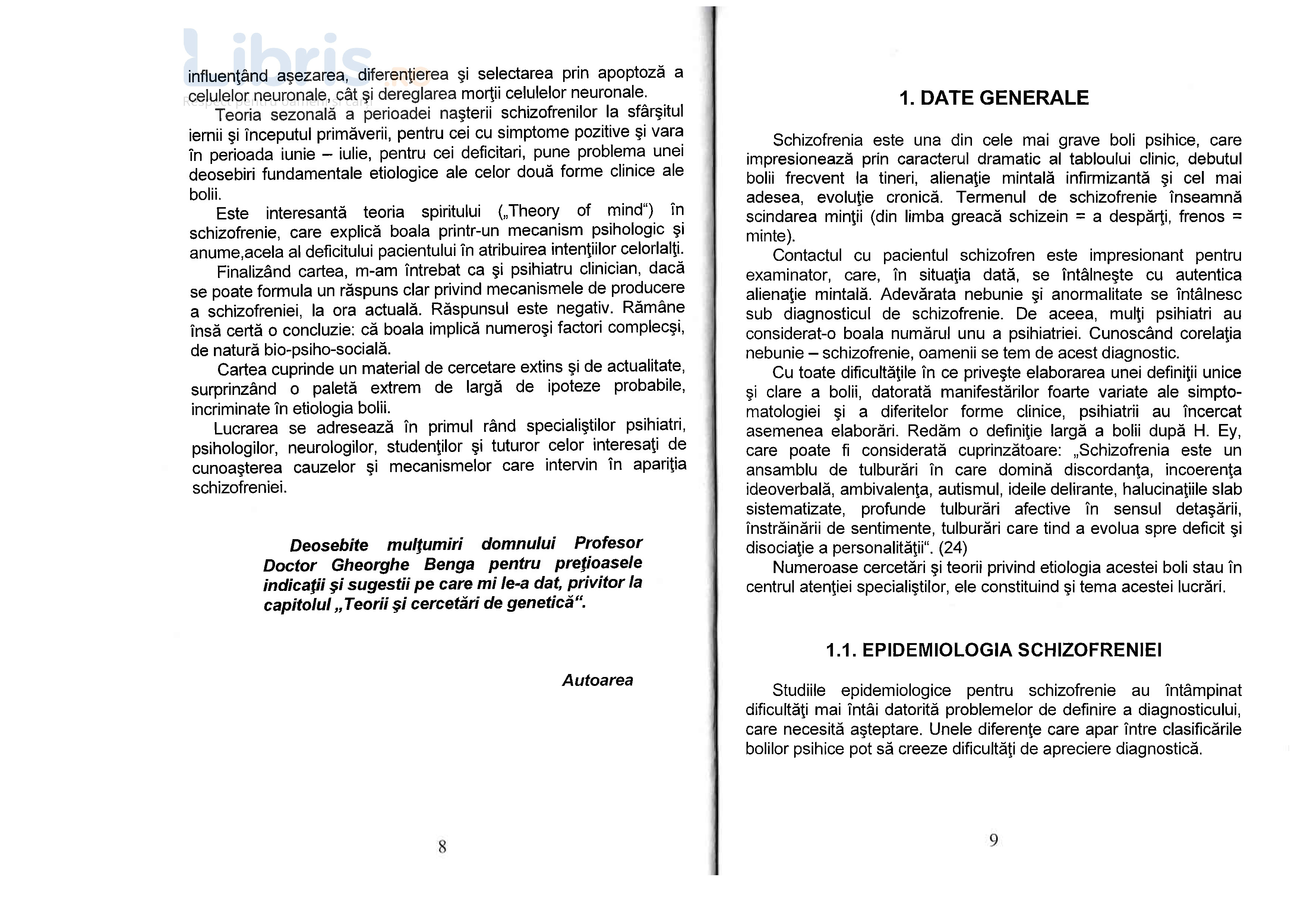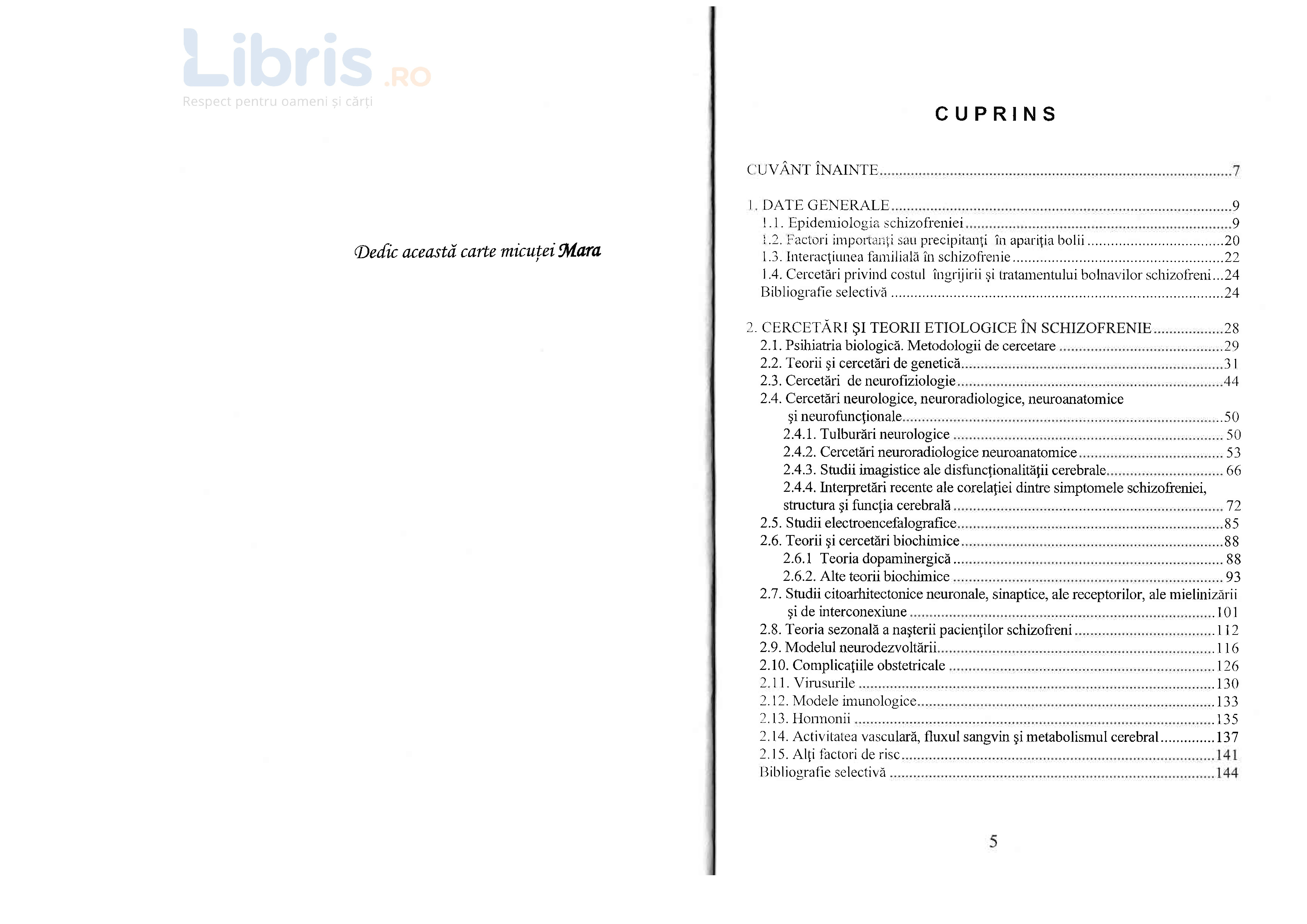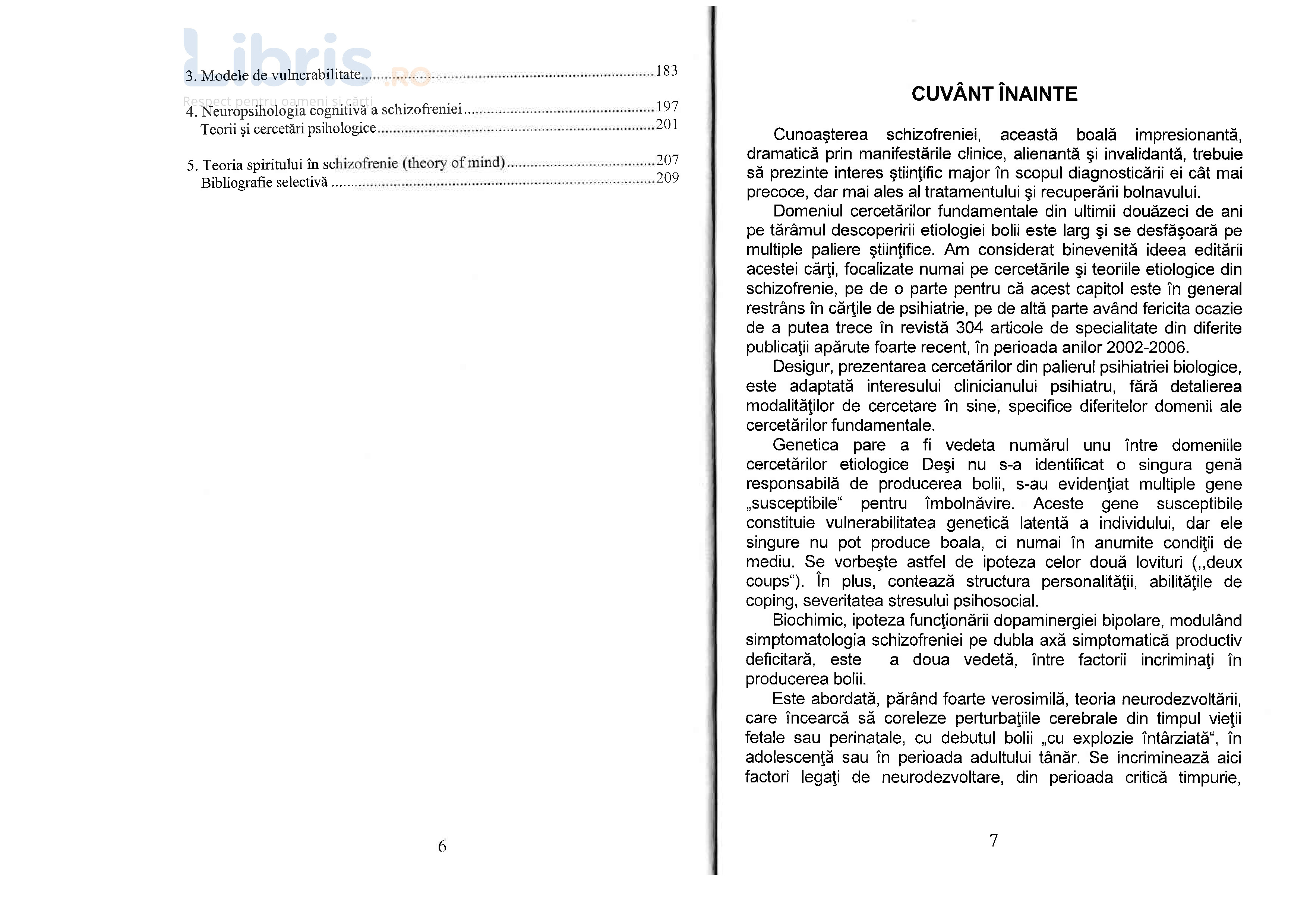 Autoarea trece in revista 304 articole de specialitate publicate in perioada 2002-2006. Incepe cu cercetari din domeniul psihiatriei biologice, continuand cu descoepririle geneticii referitoare la multiple gene ce pot fi implicate in declansarea schizofreniei.