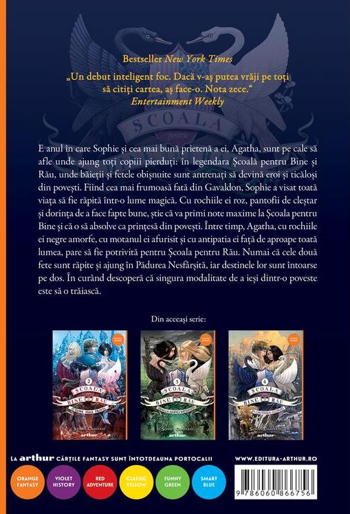 E anul în care Sophie și cea mai bună prietenă a ei, Agatha, sunt pe cale să afle unde ajung toți copiii pierduți: în legendara Școală pentru Bine și Rău, unde băieții și fetele obișnuite sunt antrenați să devină eroi și ticăloși din povești. Fiind cea mai frumoasă fată din Gavaldon, Sophie a visat toată viața să fie răpită într-o lume magică. Cu rochiile ei roz, pantofii de cleștar și dorința de a face fapte bune, știe că va primi note maxime la Școala pentru Bine și că o să absolve ca prințesă din povești. Între timp, Agatha, cu rochiile ei negre amorfe, cu motanul ei afurisit și cu antipatia ei față de aproape toată lumea, pare să fie potrivită pentru Școala pentru Rău. Numai că cele două fete sunt răpite și ajung în Pădurea Nesfârșită, iar destinele lor sunt întoarse pe dos. În curând descoperă că singura modalitate de a ieși dintr-o poveste este să o trăiască.