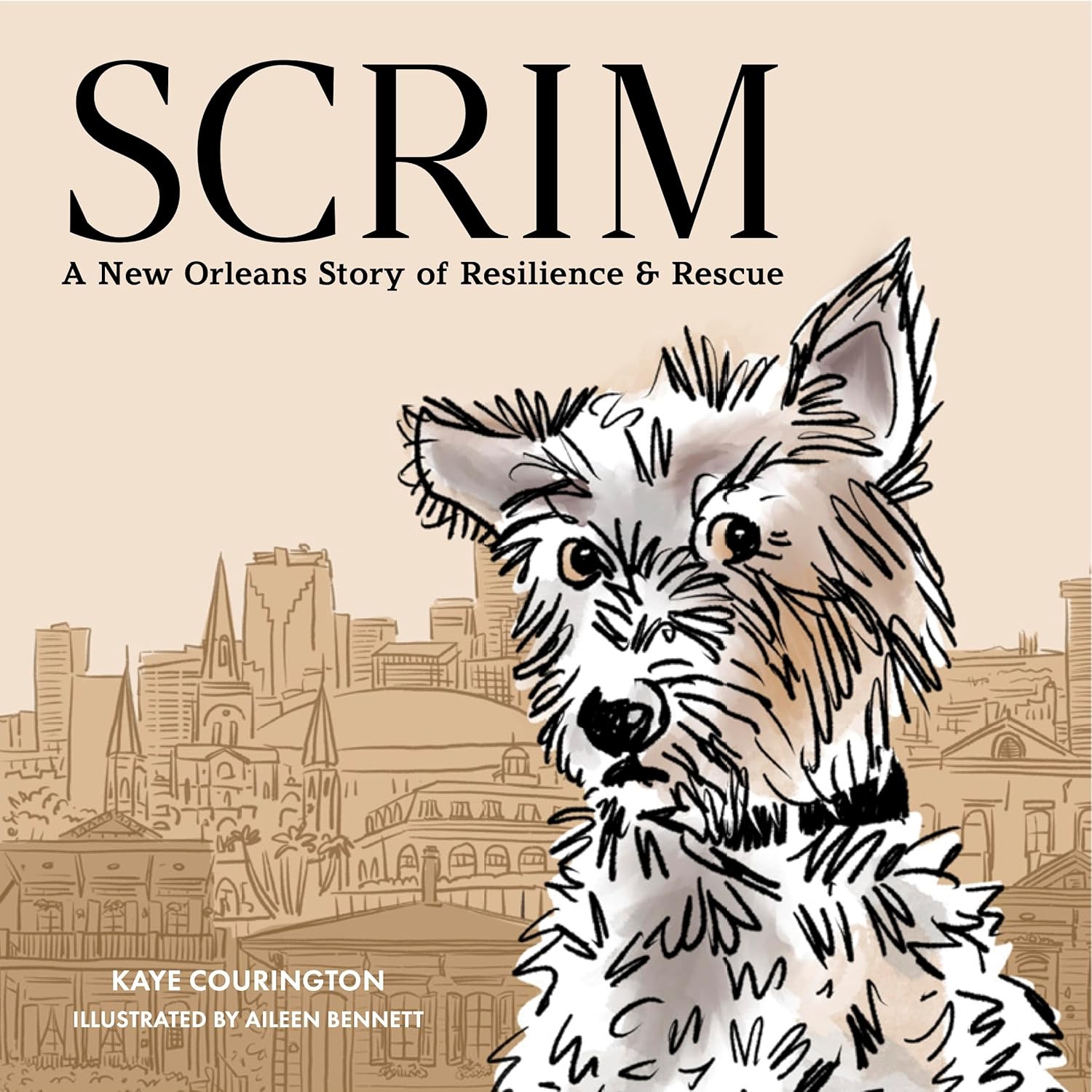 SCRIM: A New Orleans Story of Resilience and Rescue chronicles the heartwarming and epic journey of Scrim the terrier throughout New Orleans in picture book form for animal lovers everywhere. A true story, and originally featured in The Times-Picayune, The New York Times, The Washington Post, The Wall Street Journal, ABC, CBS & NBC News and more, Scrim became an instant hero, "a living, panting embodiment of the spirit of New Orleans." -The New York Times