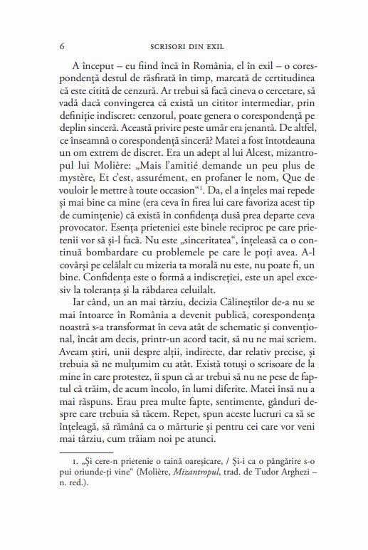 „Cei care au împărtățit, aidoma nouă, condiția exilului se vor regăsi pe ei, cel puțin în parte, în această corespondență. Prietenia pe care am evocat-o consistă în dorința vie de-a face celuilalt binele; prietenul este, în reciprocitate și oglindă, cel mai devotat și mai spontan dintre terapeuți. În nici un caz el nu îți face morală, în nici un caz nu îți minimizează suferința. Prietenia este un «da» permanent, un «da» neconvențional și lipsit de ipocrizie.“ – ION VIANU