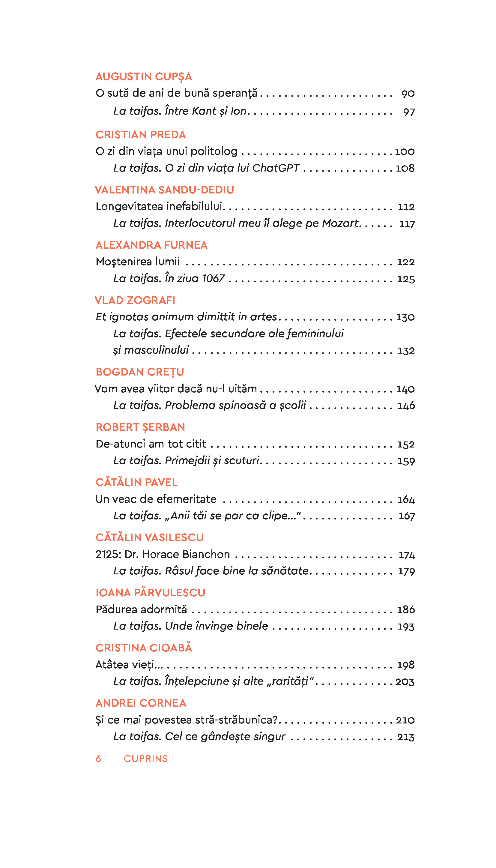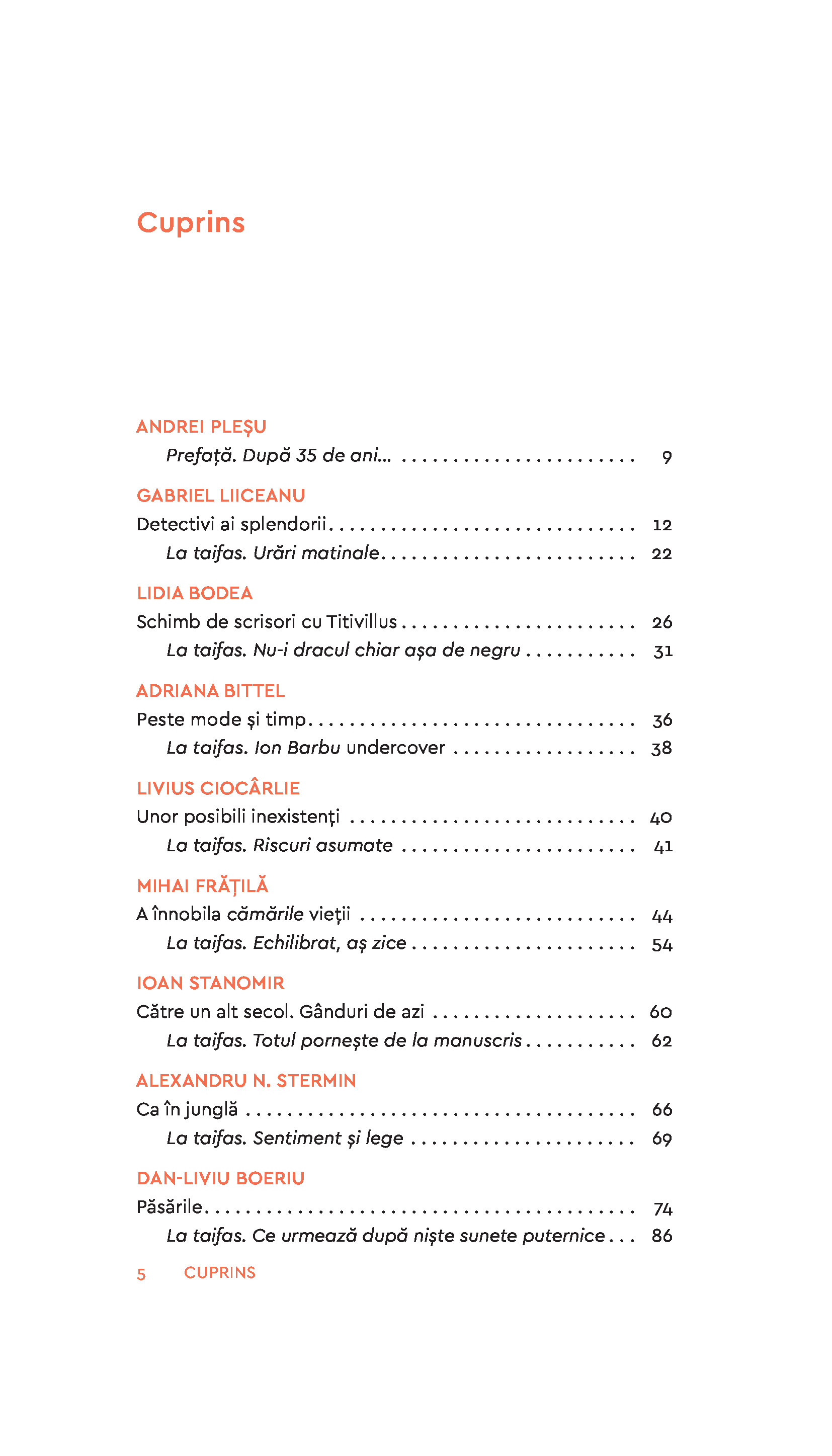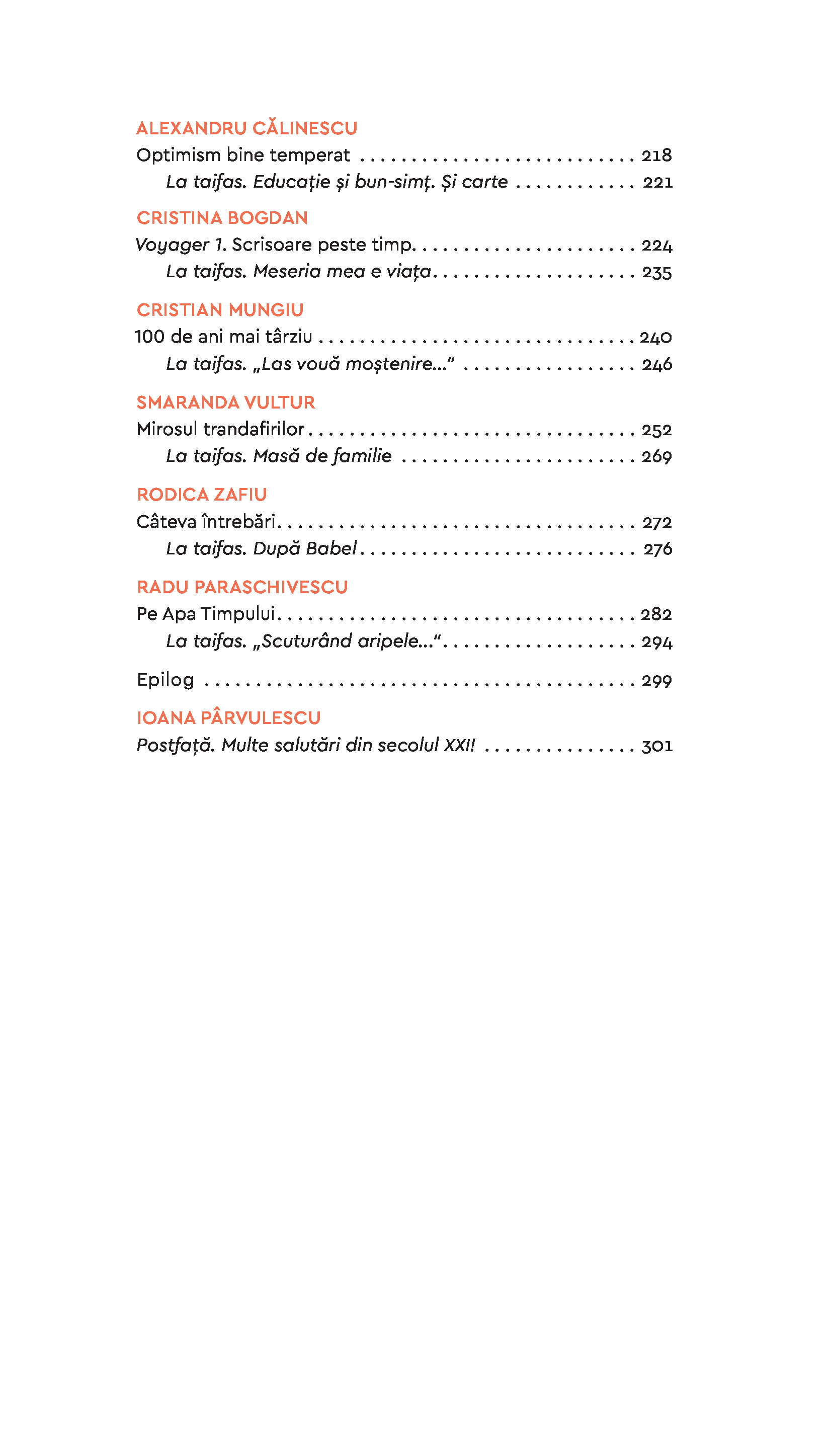 Adriana Bittel • Lidia Bodea • Dan-Liviu Boeriu • Cristina Bogdan • Alexandru Călinescu • Cristina Cioabă • Livius Ciocârlie • Andrei Cornea • Bogdan Crețu • Augustin Cupșa • Mihai Frățilă • Alexandra Furnea • Gabriel Liiceanu • Cristian Mungiu • Radu Paraschivescu • Cătălin Pavel • Ioana Pârvulescu • Andrei Pleșu • Cristian Preda • Valentina Sandu-Dediu • Ioan Stanomir • Alexandru N. Stermin • Robert Șerban • Cătălin Vasilescu • Smaranda Vultur • Rodica Zafiu • Vlad Zografi