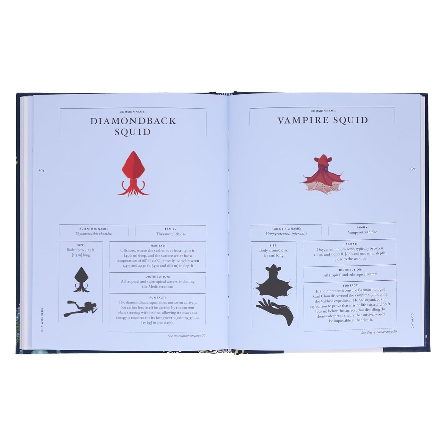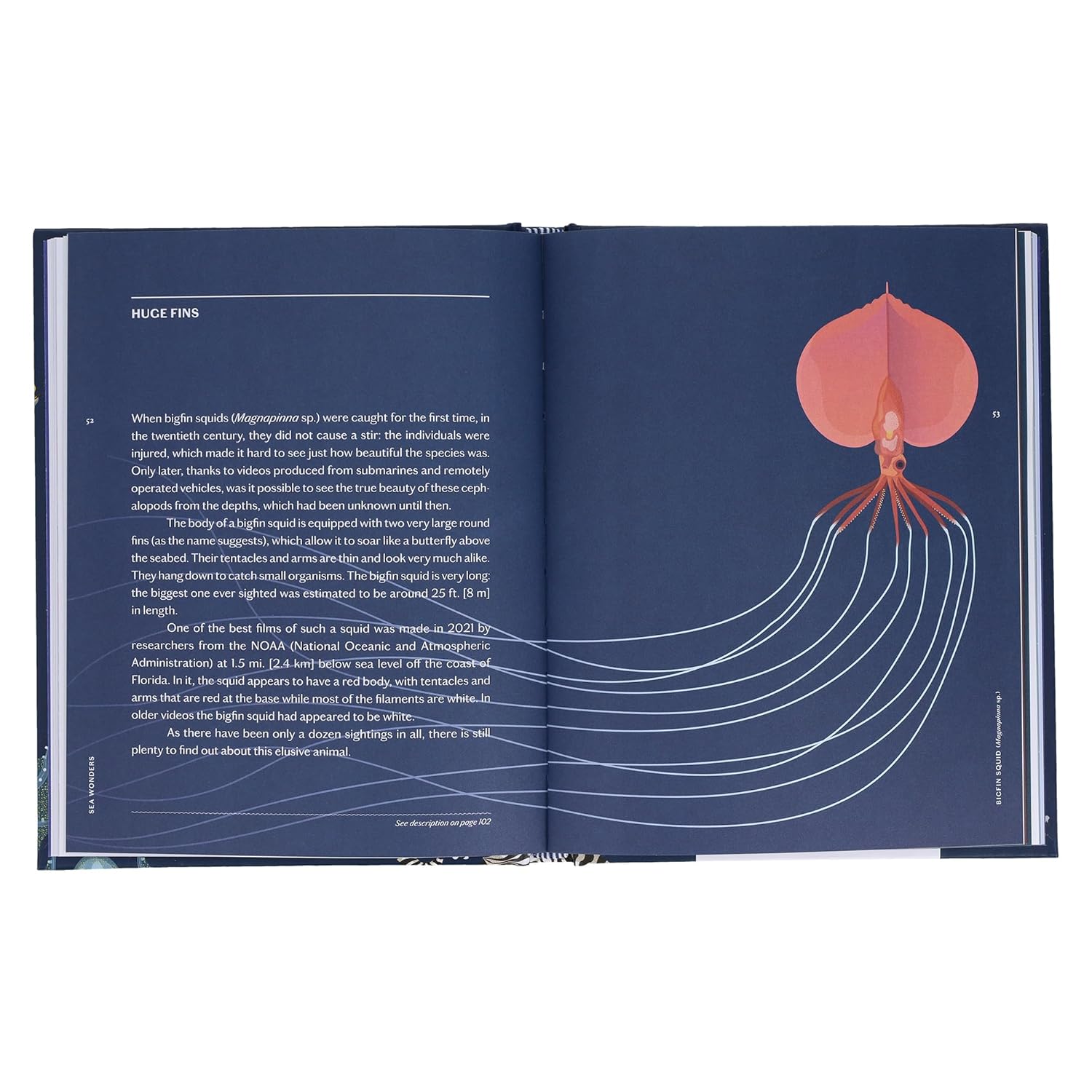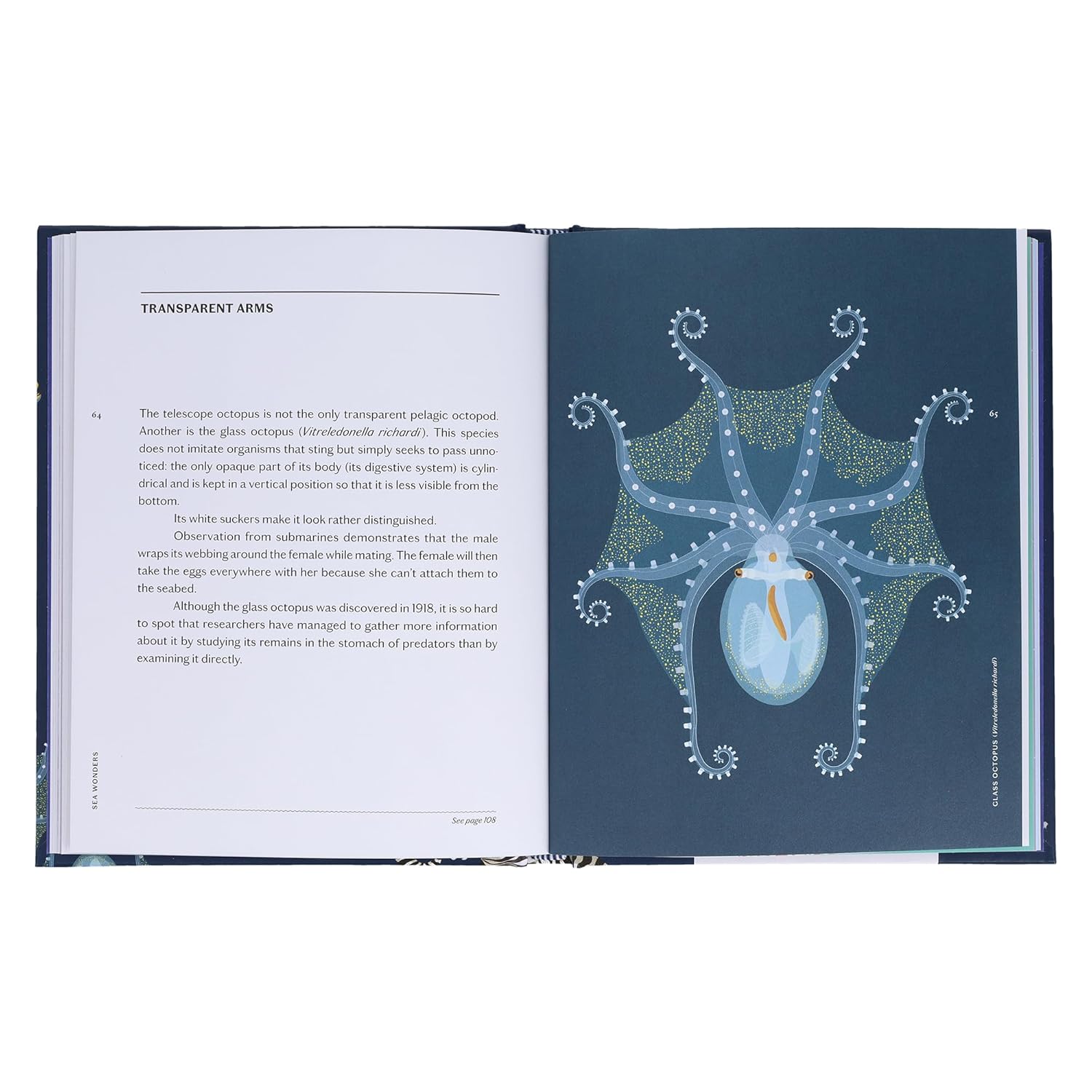 In Sea Wonders, discover the remarkable characteristics of cephalopods, enigmatic sea creatures with arms directly attached to their heads, who are masters of survival and transformation. Thirty species are collected in this fascinating guidebook, detailing their most surprising habits and abilities: