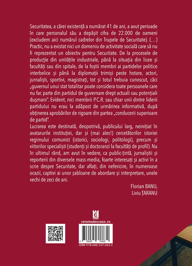 Securitatea, a carei existenta a numarat 41 de ani, a avut perioade in care personalul sau a depasit cifra de 22.000 de oameni (excludem aici numarul cadrelor din Trupele de Securitate). (…)