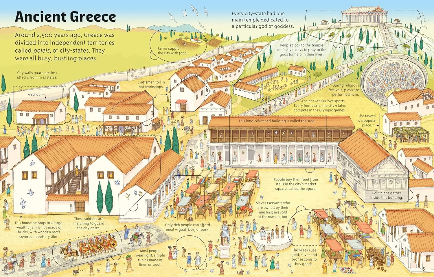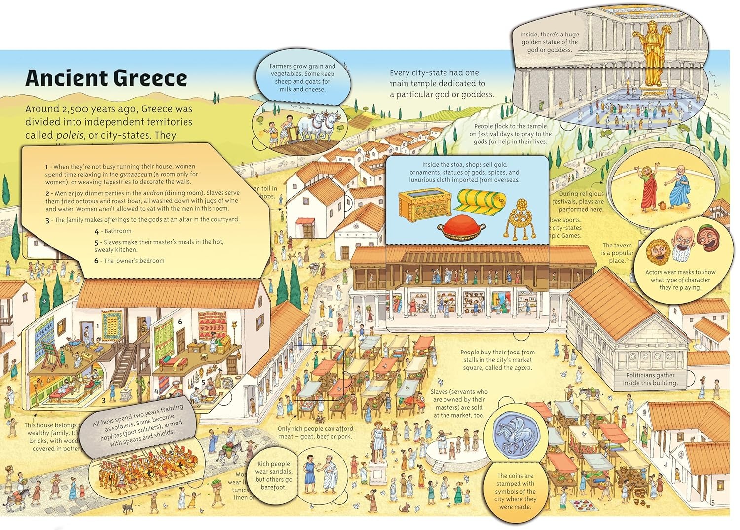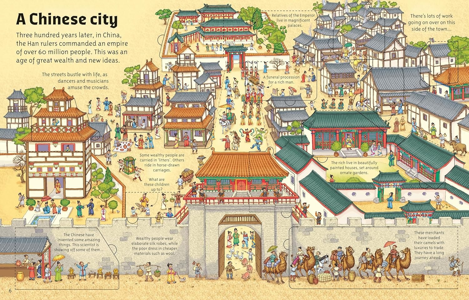 Lift the flaps to find out how ancient people people lived, and how they died, what they ate, and how they built some of their amazing monuments. Look inside an Egyptian temple, open the doors of ancient Chinese houses, witness an Assyrian army laying siege to a fortress, and find out what goes on behind the walls of a Roman army fort.