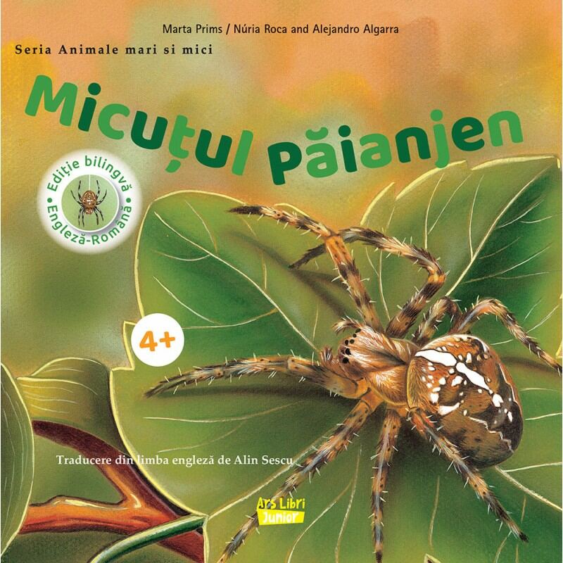 • Micuțul păianjen - Vrei să faci cunoștință cu acest micuț păianjen? Atunci haide cu el în grădina unde s-a născut și îți va arăta o mulțime de lucruri incredibile și interesante. Îți va povesti cum s-a născut și cum a trăit cu toți frații și surorile lui înainte să părăsească cuibul. Vei învăța cum vânează păianjenii și unde trăiesc. Vei afla secretul pânzei de păianjen și vei descoperi cum scapă păianjenii-cămilă de prădători. Pe lângă realisticele ilustrații color, această carte include texte atât în limba engleză, cât și în limba română, dar și o pagină cu alte informații interesante despre păianjeni. Apucă-te de citit!