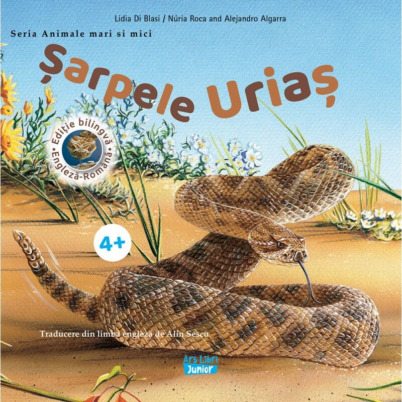 • Șarpele uriaș - Acesta este un șarpe cu clopoței, dar nu-ți fie frică! Vino și tu ca să-ți povestească totul despre viața lui. Învață cum se deplasează șerpii și descoperă metodele lor diferite de a vâna. Uită-te atent cum arată fiecare și ce se întâmplă cu pielea lor când năpârlesc. Vei învăța ce simțuri folosesc ca să exploreze lumea și vei descoperi multe specii interesante de șerpi. Pe lângă realisticele ilustrații color, această carte include texte atât în limba engleză, cât și în limba română, dar și o pagină cu alte informații interesante despre șerpi. Deschide-o acum! Ce mai aștepți?